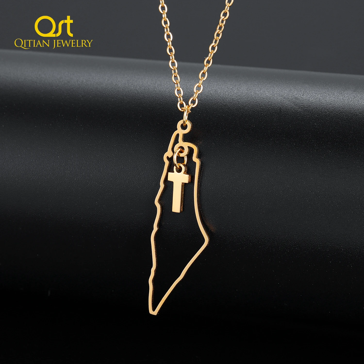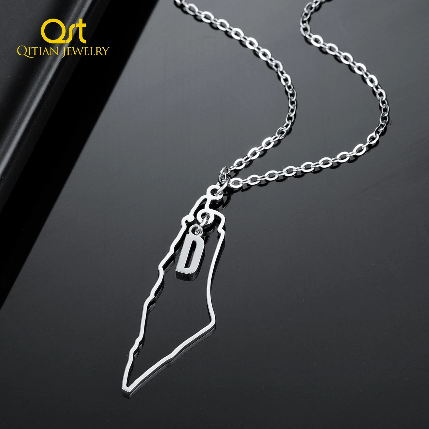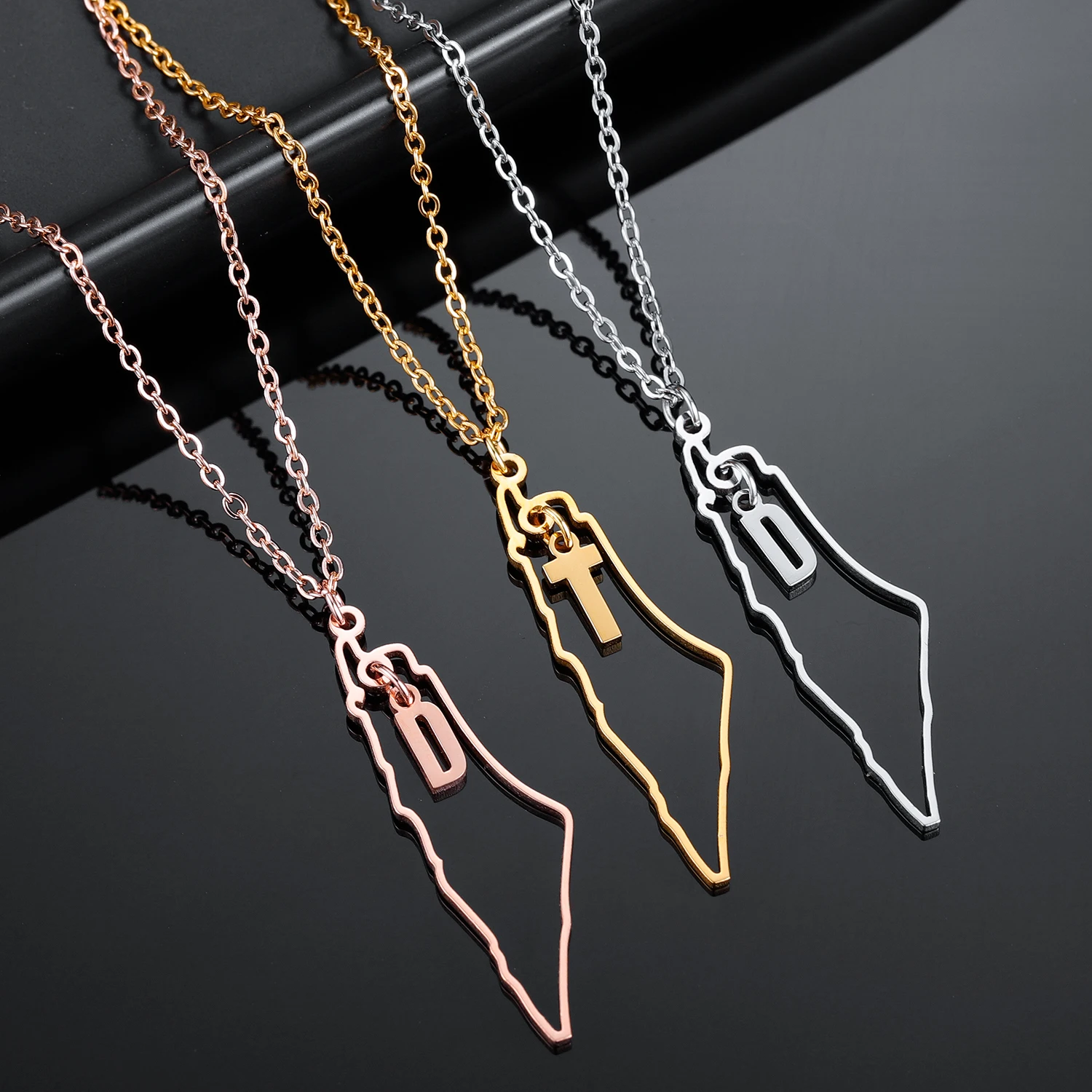 Цепочка с подвеской с надписью инициала Палестины, индивидуальное ожерелье из нержавеющей стали золотого цвета с картами Палестины, подарочное Ювелирное Украшение для женщин и мужчин