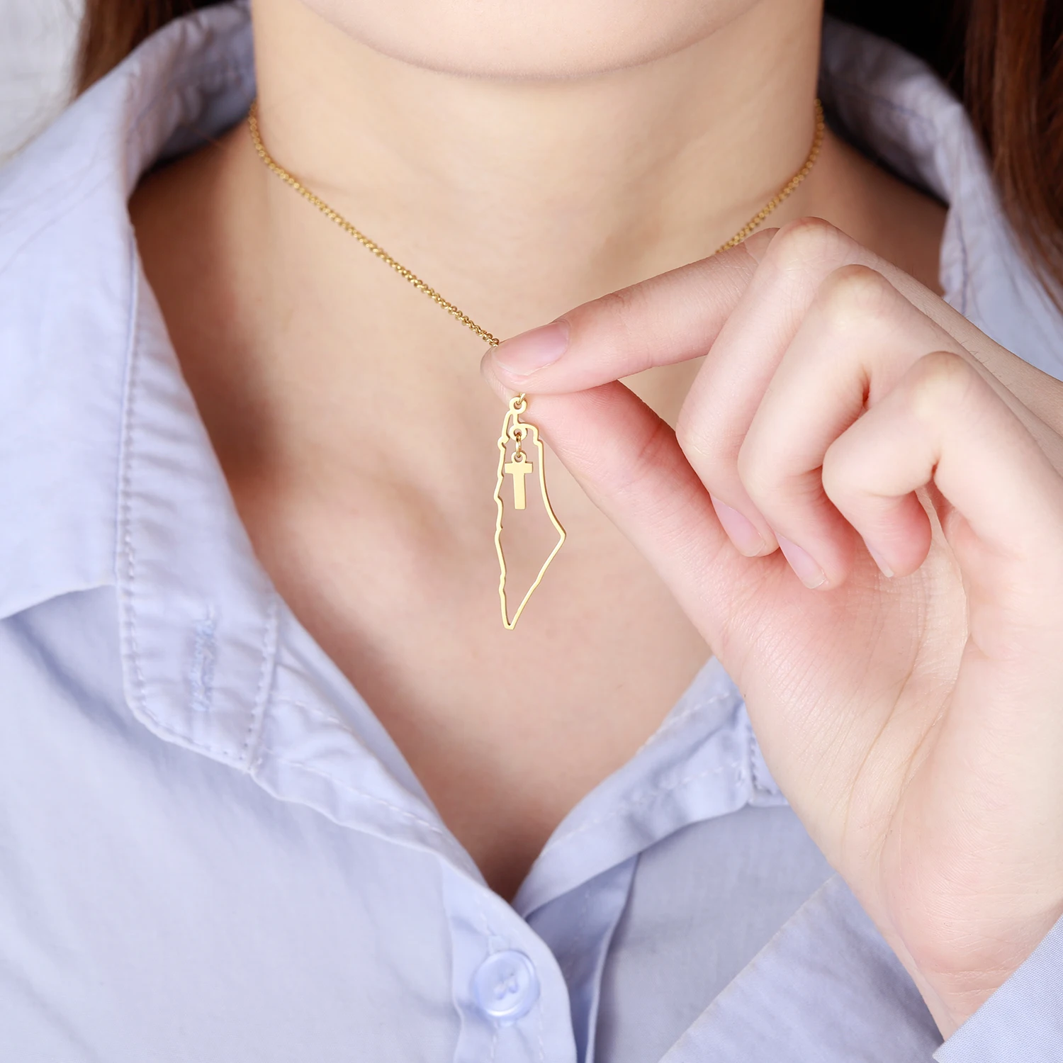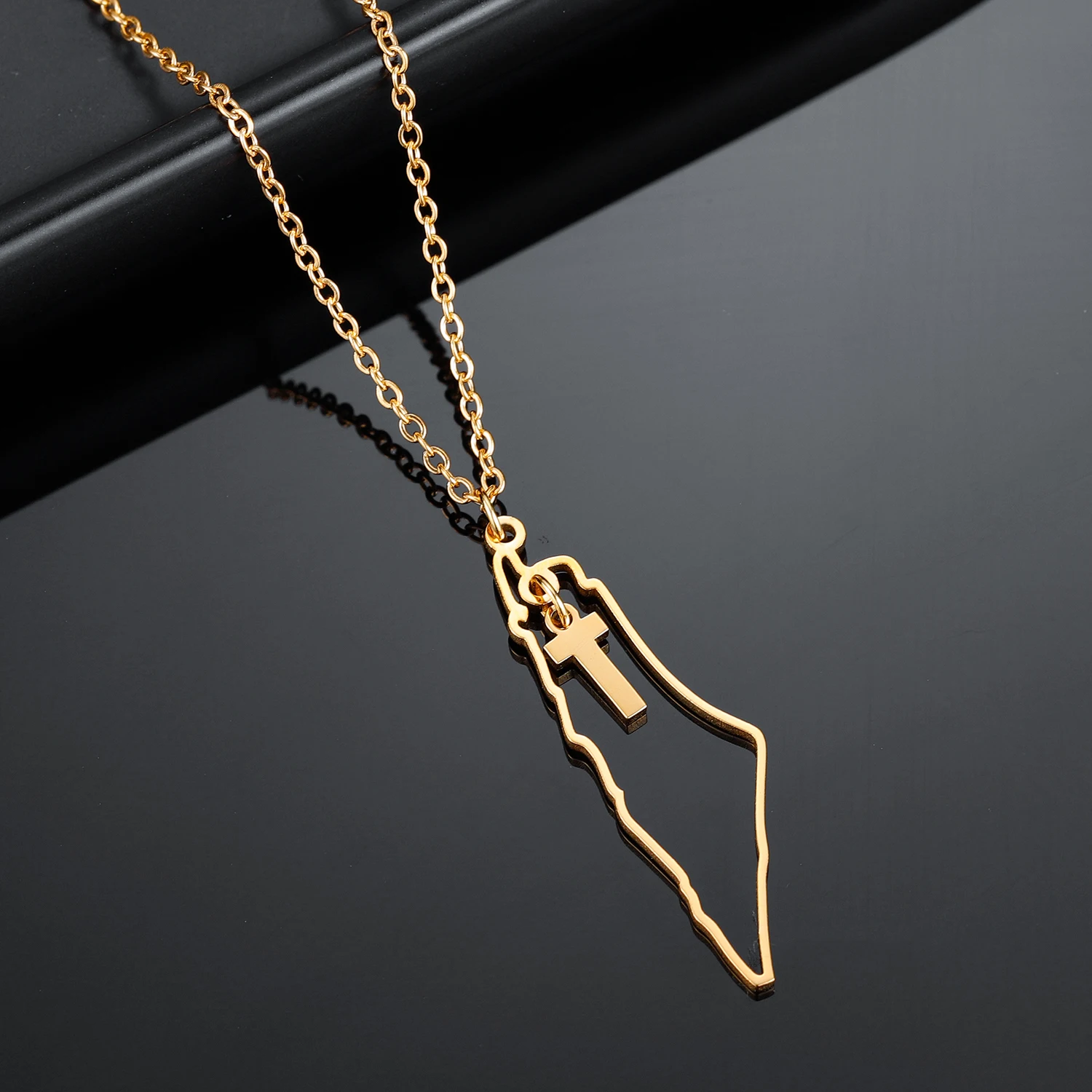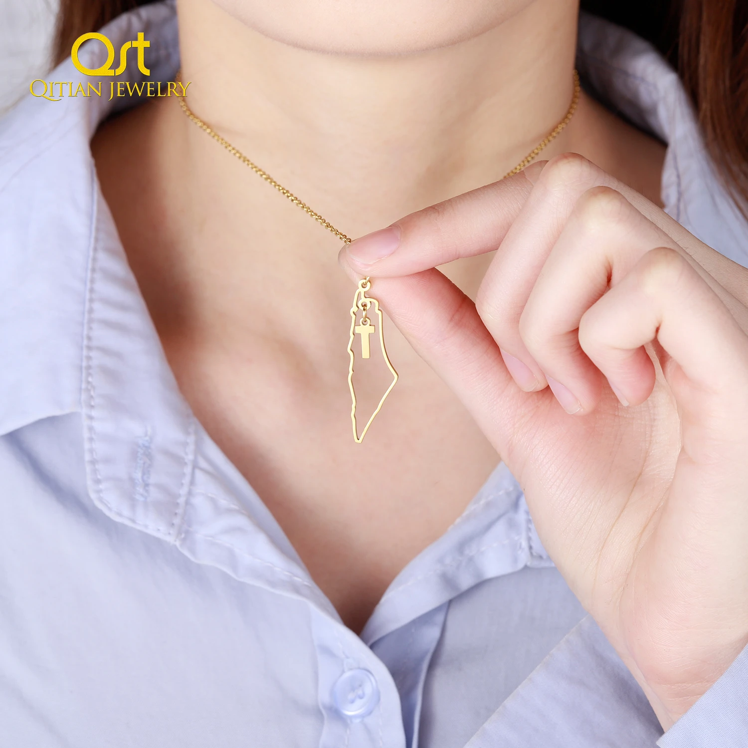 Цепочка с подвеской с надписью инициала Палестины, индивидуальное ожерелье из нержавеющей стали золотого цвета с картами Палестины, подарочное Ювелирное Украшение для женщин и мужчин