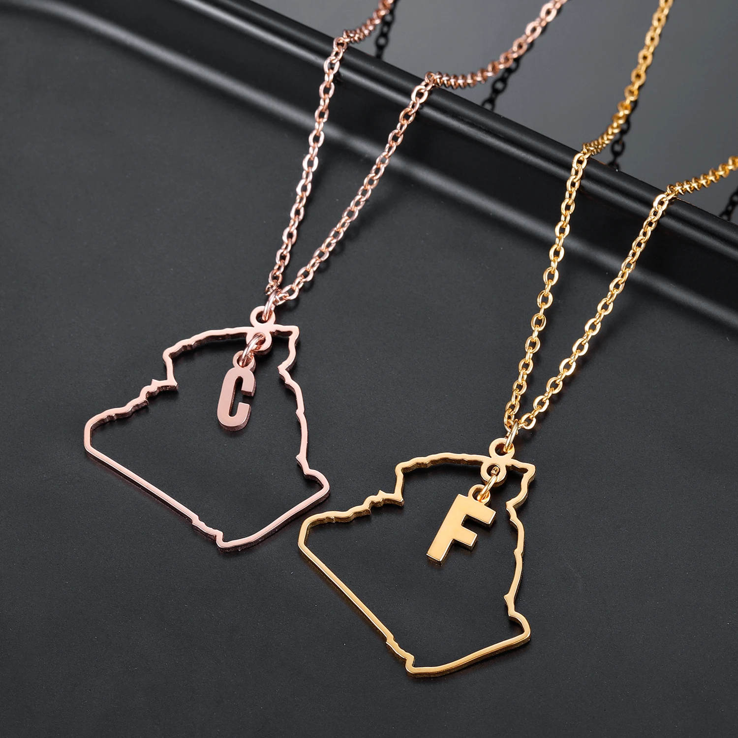 Подвеска Algalia с картой с инициальной буквой, Арабская цепочка, ожерелья с картами Algalia, золотая бижутерия из нержавеющей стали для женщин и мужчин, подарок