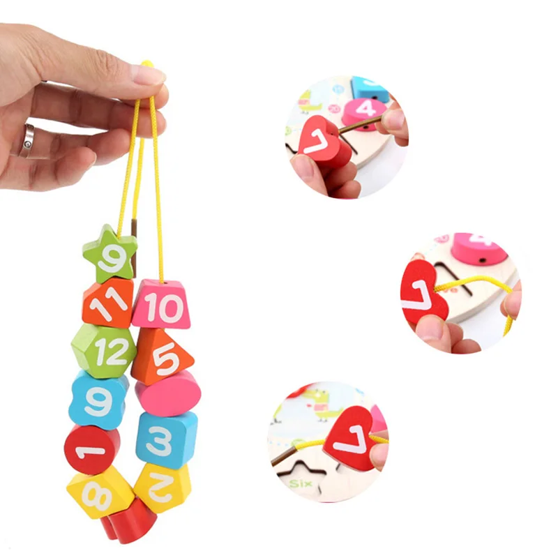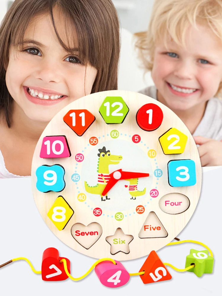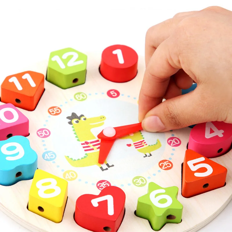 Монтессори мультфильм животных Образовательные деревянные бисером Геометрия цифровые часы Пазлы гаджеты соответствующие часы игрушки для детей