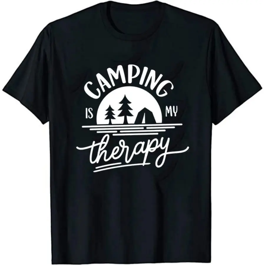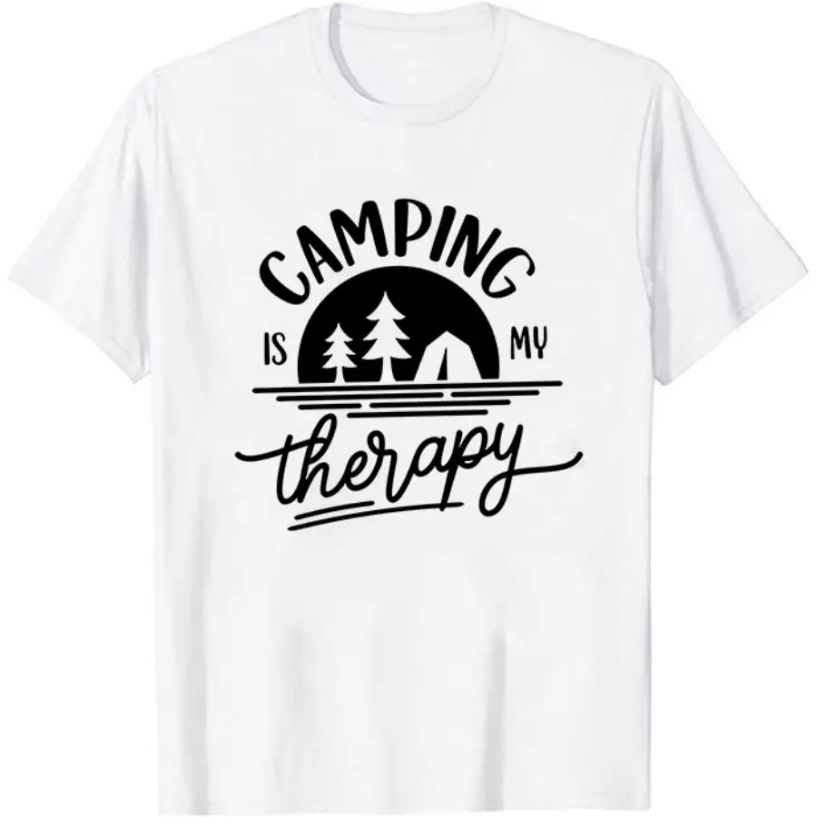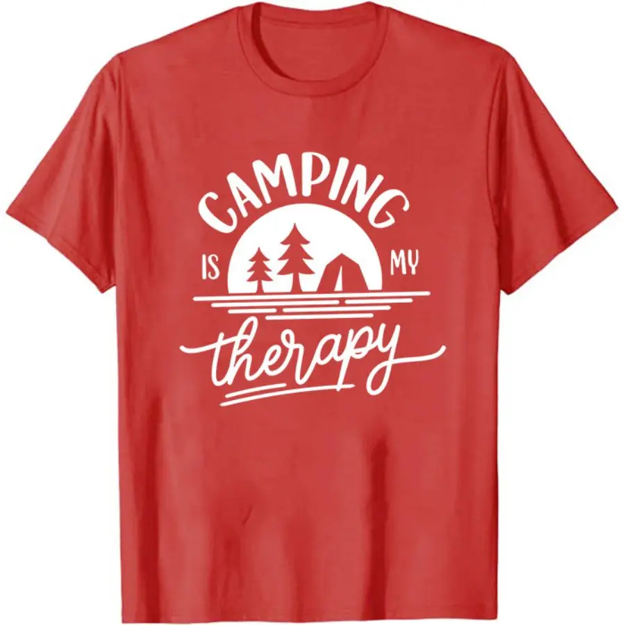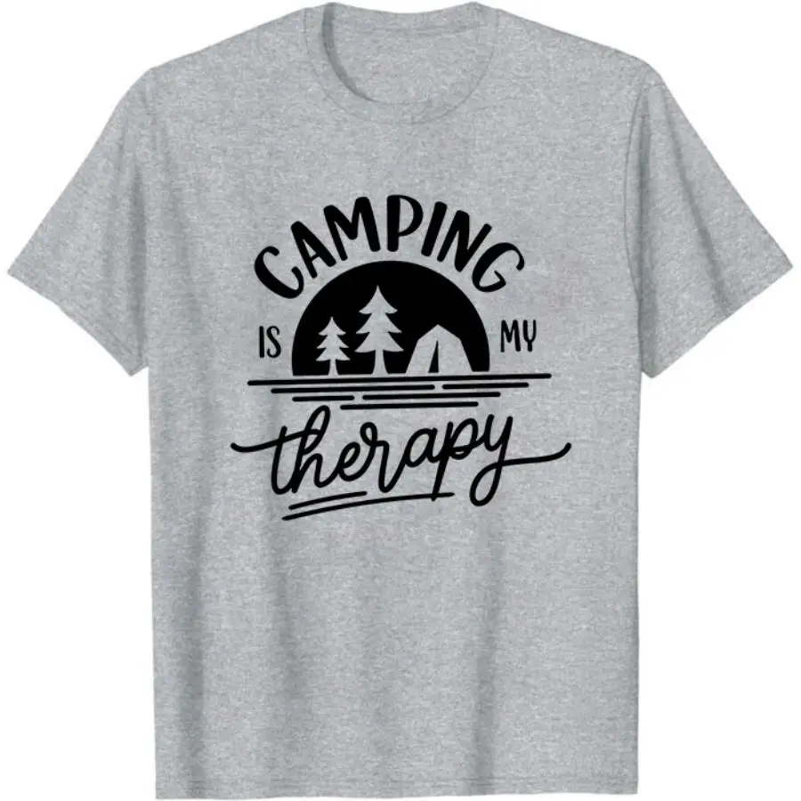 Забавная футболка для любителей кемпинга, веселая кемпинговая терапия, Женская Эстетическая графическая футболка, Повседневная забавная женская футболка с коротким рукавом