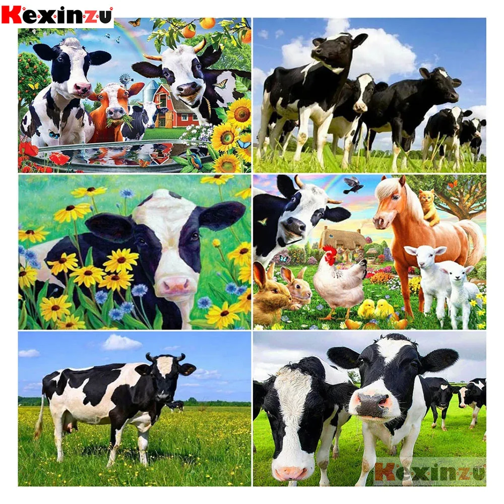 Набор для алмазной вышивки KEXINZU, картина из квадратныхкруглых страз 5D сделай сам с коровами, мозаика с вышивкой крестиком, стразы