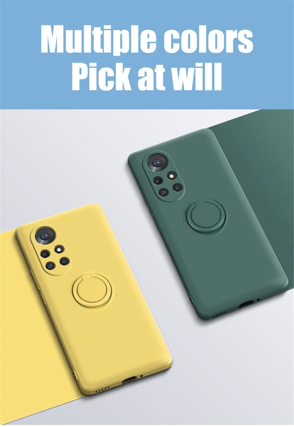 Жидкий силиконовый чехол с кольцом-держателем для Huawei P20 P30 P40 Mate 20 30 40 Pro Honor 20S 30S V30 V40 Pro Nova 5i 6 7 8 SE, мягкий чехол