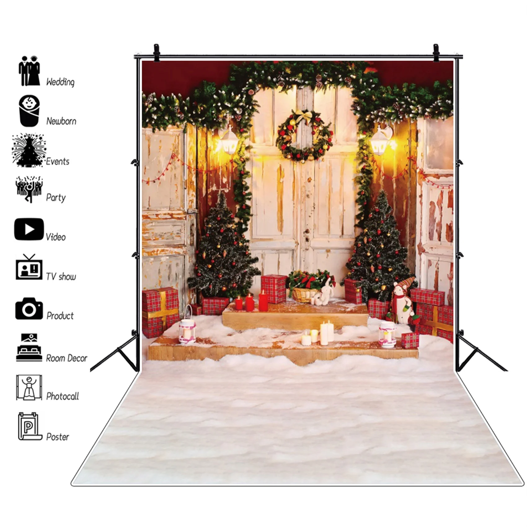 Laeacco Рождественская елка Виниловый фон деревянные доски пол Интерьерная сцена семейная детская фоновая фотография постер