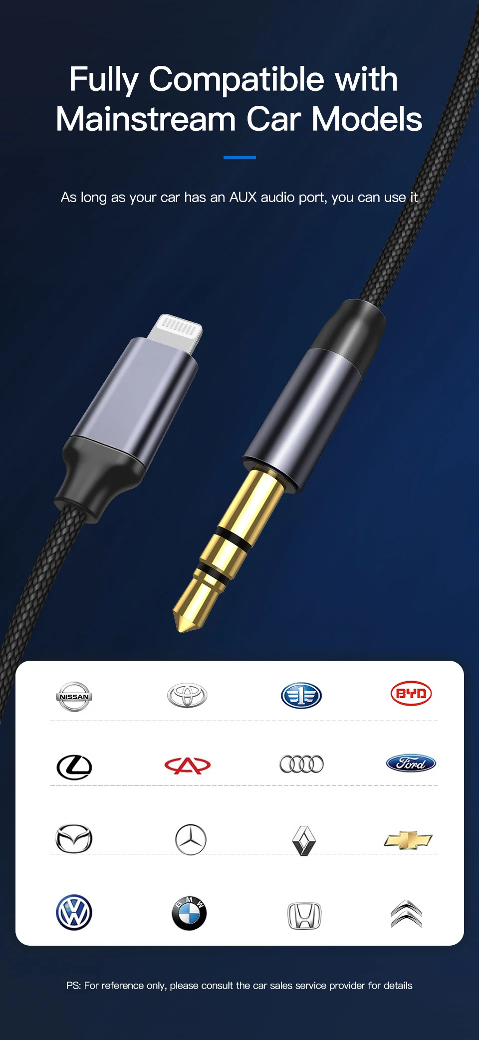 Кабель Aux Missgoal с 8 контактами на 3,5 мм, автомобильный переходник для наушников, аудиоадаптер для IPhone 12 11 Pro