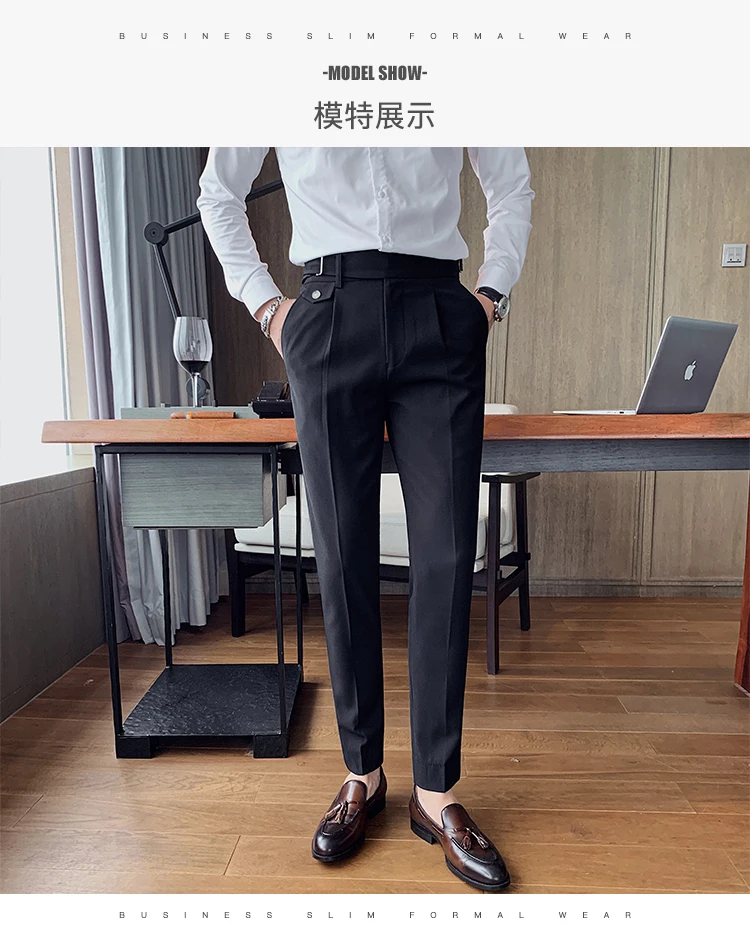 Костюмные брюки для мужчин, мужские британские деловые облегающие деловые брюки, Мужская одежда, классические брюки, мужские брюки на молнии с карманами