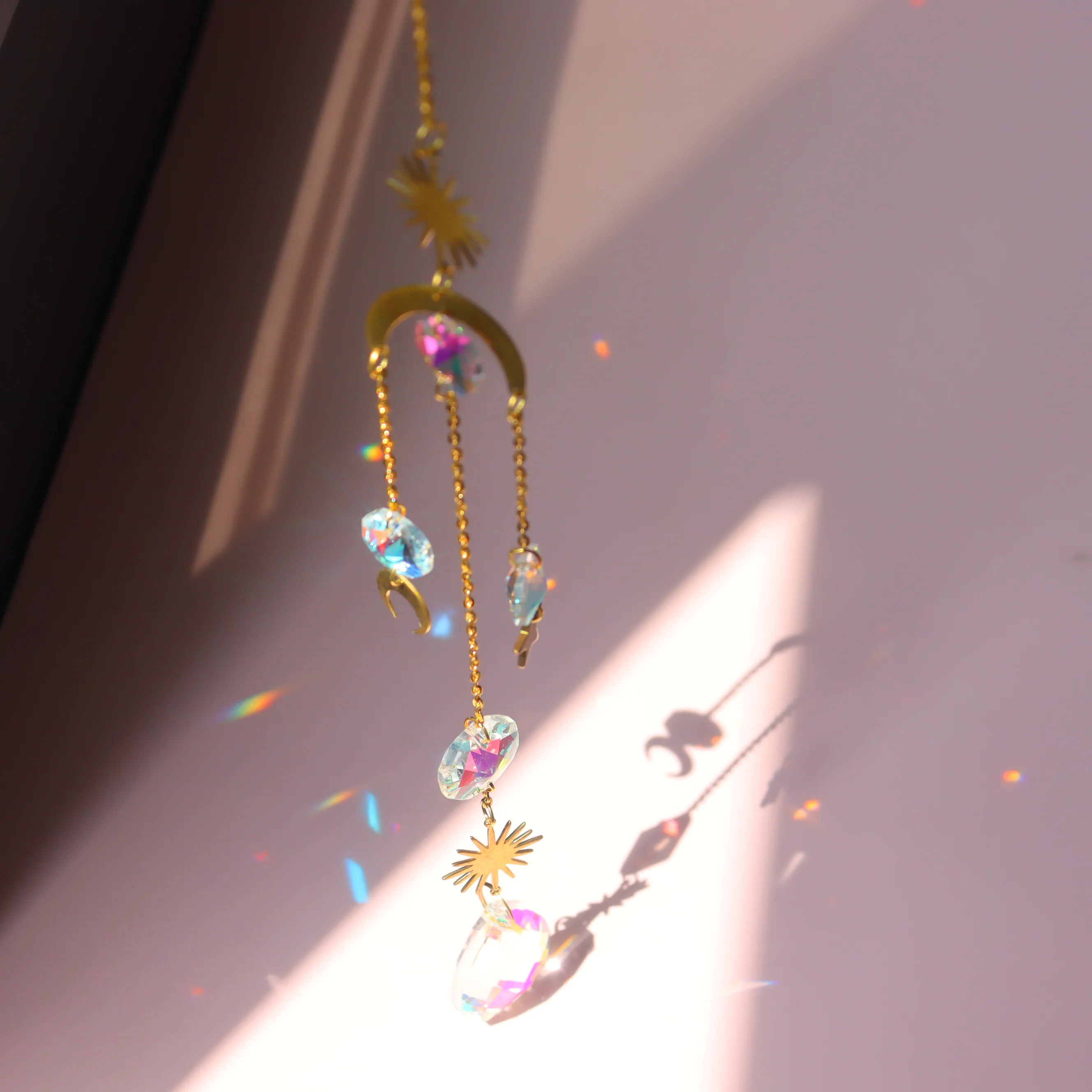 Хрустальные ветряные музыки подвеска Звезда Луна ручной работы Ловец света ручной работы садовые окна Свадебные занавески Декор Sunburst Wind Chime