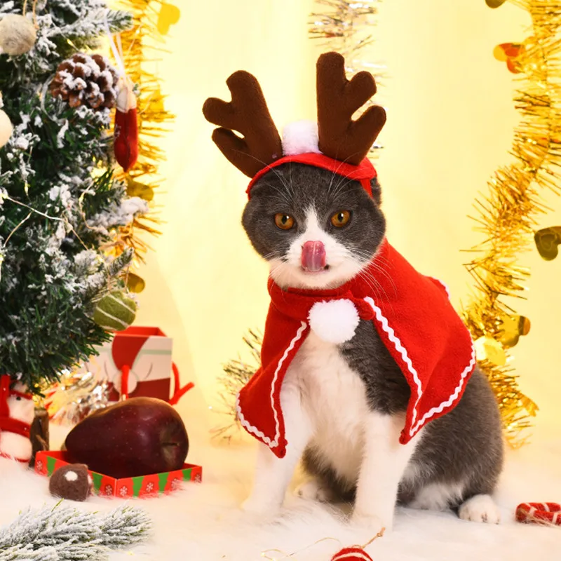 Рождественская шапка, костюм для домашних животных, теплая одежда, ...