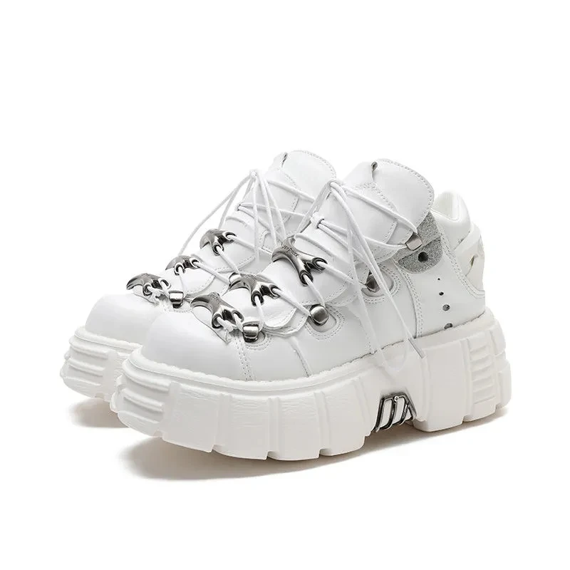Женские кроссовки со шнуровкой, повседневные туфли на платформе 6 см в стиле панк, с металлическим декором, для тенниса, 2021