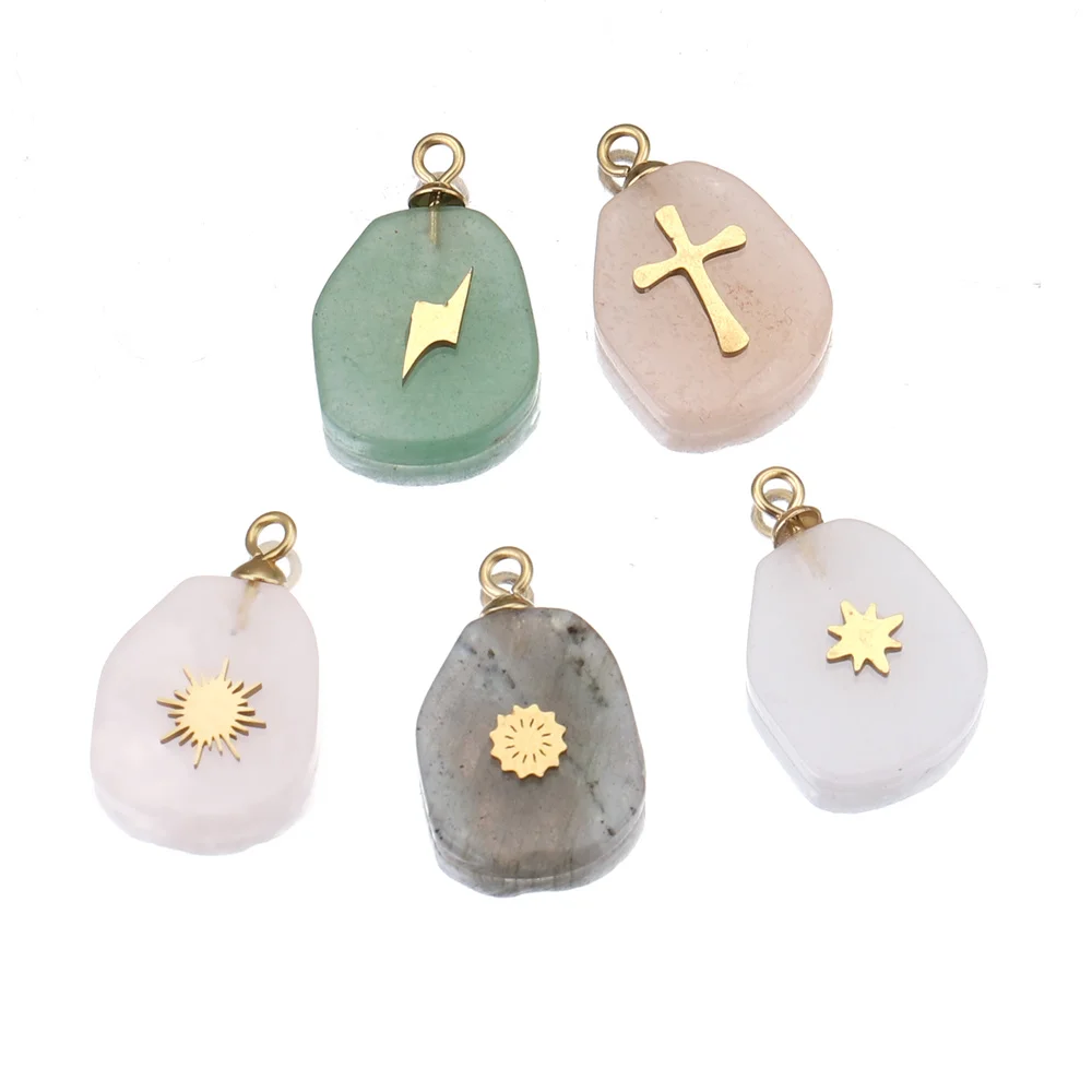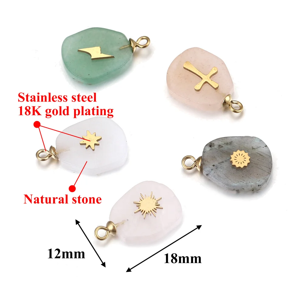 Подвески из натурального камня, 5 шт.лот, из нержавеющей стали, золотые подвески, камень, кварц, кулон, сделай сам, серьги, ожерелья, изготовление ювелирных изделий