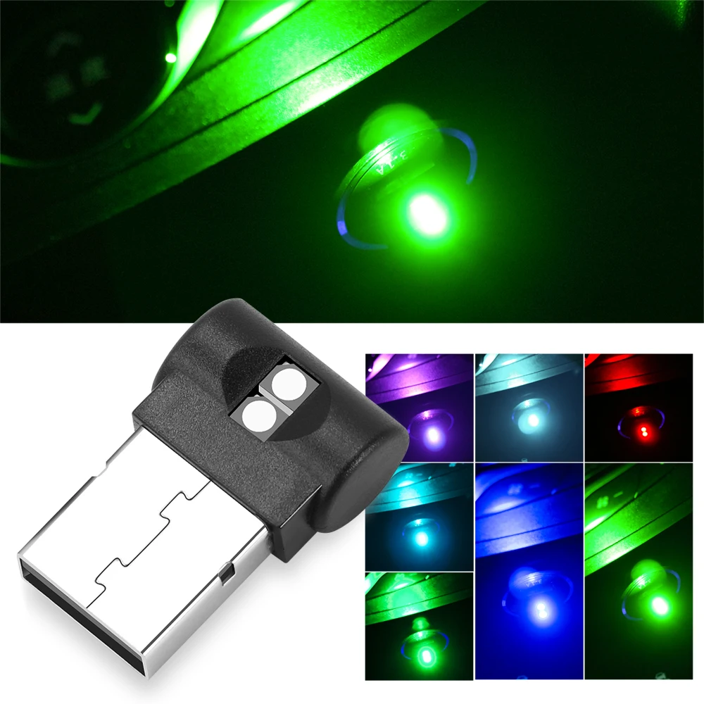 1 шт. USB СВЕТОДИОДНЫЙ Красочный светильник для салона автомобиля а...