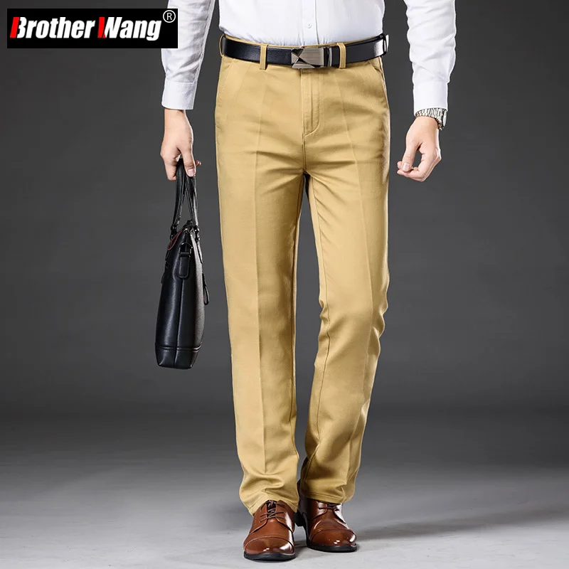 Brother Wang, Новинка осени и зимы, мужские мешковатые прямые повседневные брюки из модальной ткани, Стрейчевые деловые брюки цвета хаки, мужские