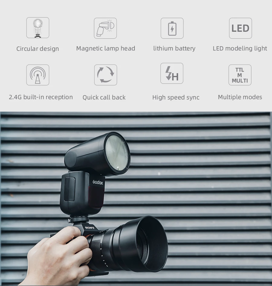 Godox V1 вспышка V1C V1N V1S V1F V1O V1P TTL 18000s HSS Литиевая Батарея Вспышка Speedlite для Canon Nikon Sony Fuji Olympus Pentax