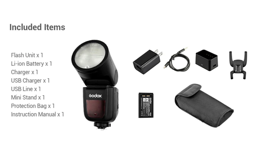 Godox V1C литий-ионная вспышка с круглой головкойGodox V1 оснащен круглой головкой вспышки, чтобы предложить студийный мягкий и ровный светильник.С мощными функциями и большим количеством аксессуаров, он подходит для портретной, свадебной, события, путешествия фотографии, натюрморт фотографии и т. Д.Быстрый замок горячий башмакШирокий Угол регулировки от 0 ° до 330 ° по горизонтали и от-7 до 120 ° по вертикали, что повышает эффективность съемки при падении вспышки.Поддержка обновления прошивки USBСовместимость с однообъективной зеркальной камеры Canon EOS камер серии, полная поддержка Canon E-TTL II Автоматическая вспышка, ручная вспышка, 1/8000s Высокоскоростная синхронизация, FEC,FEB,FEL, высокая скорость синхронизации и т. д.Удобный дизайн, с магнитным портом для быстрой установки различных аксессуаров, например, AK-R1 комплект аксессуаров.Работает с Godox 2,4G беспроводным X системным передатчиком.Беспроводное управление и множество функцийВстроенная беспроводная система goodx 2,4G X предлагает функцию «все в одном» и отличную совместимость.Высокопроизводительный Panasonic Li-Ion Батарея. 7,2 V/2600 мА/ч, Батарея предлагает 1.5s время зарядки и 480 полная мощность выстрелаВстроенный светодиодный светильник для моделирования регулируется от 01 до 10 шаговОтличный светильник и может использоваться для включения или выключения камерыРаспределяющий ровный светильник от центра до края, обеспечивающий естественный и красивый светильник V1 круглый эффект вспышки более мягкий и ровный.Характеристики:Мощность (1/1 выход) :76WsПокрытие вспышки: от 28 до 105 ммПродолжительность вспышки: от 1/300 до 1/20000 секундБеспроводная вспышкаФункция беспроводной вспышки: master,Slave,offУправляемые Подчиненные группы: 4(A,B,C,D)Диапазон передачи (appros.):100 мКаналы: 32(1-32)ID:01-99Моделирующая вспышка: работает с кнопкой предварительного просмотра глубины камеры.Технические данные:Мощность (1/1 выход): 76WsПокрытие вспышки: от 28 до 105 мм-Автоматическое увеличение (покрытие вспышки автоматически устанавливается в соответствии с фокусным расстоянием объектива и размером изображения)-- Ручной зум-- Качающаяся/наклонная головка вспышки (Вспышка отскока): от 0 до 330 градусов по горизонтали и от-7 градусов до 120 градусов по вертикалиПродолжительность вспышки: от 1/300 до 1/20000 секундСветодиодный светильник: Мощность: 2 Вт, цветовая температура: 3300K +- 200KПосылка Godox V1:1 * Вспышка Godox V11 * Аккумулятор1 * зарядное устройство1 * USB кабель для зарядки1 * защитный чехол1 * Руководство пользователя
