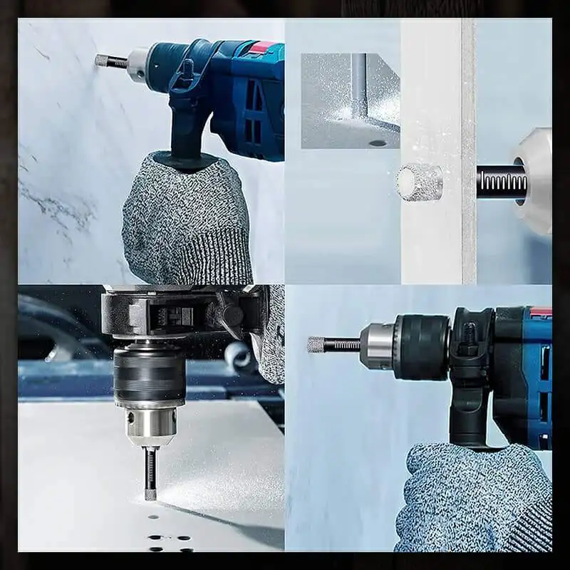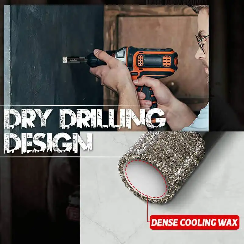 Алмазное сверло интегрировано сВысококачественный охлаждающий воскСмазка внутри, которая плавится во времяСухое сверление и охлаждение режущей поверхности;Не нужно добавлять воды,Который можетЭффективно снижает температуруСверла иУвеличить срок службыСверла.