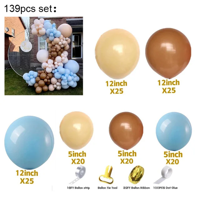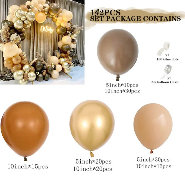 Латексный воздушный шар, арка, двойной кофейный, 136 шт.компл., воз...