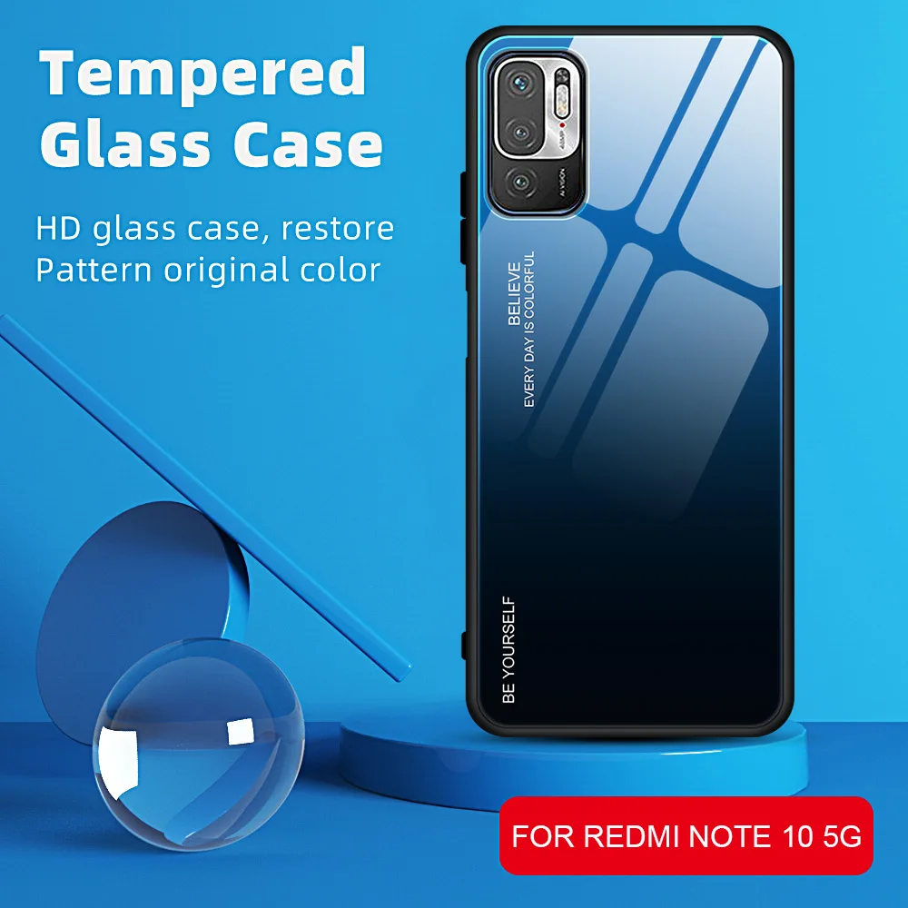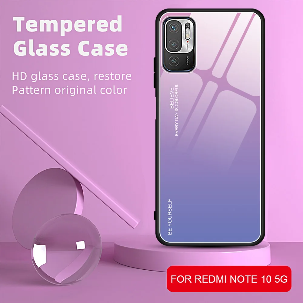 Gradient Tempered Glass Case For Xiaomi Redmi Note 10 Cover