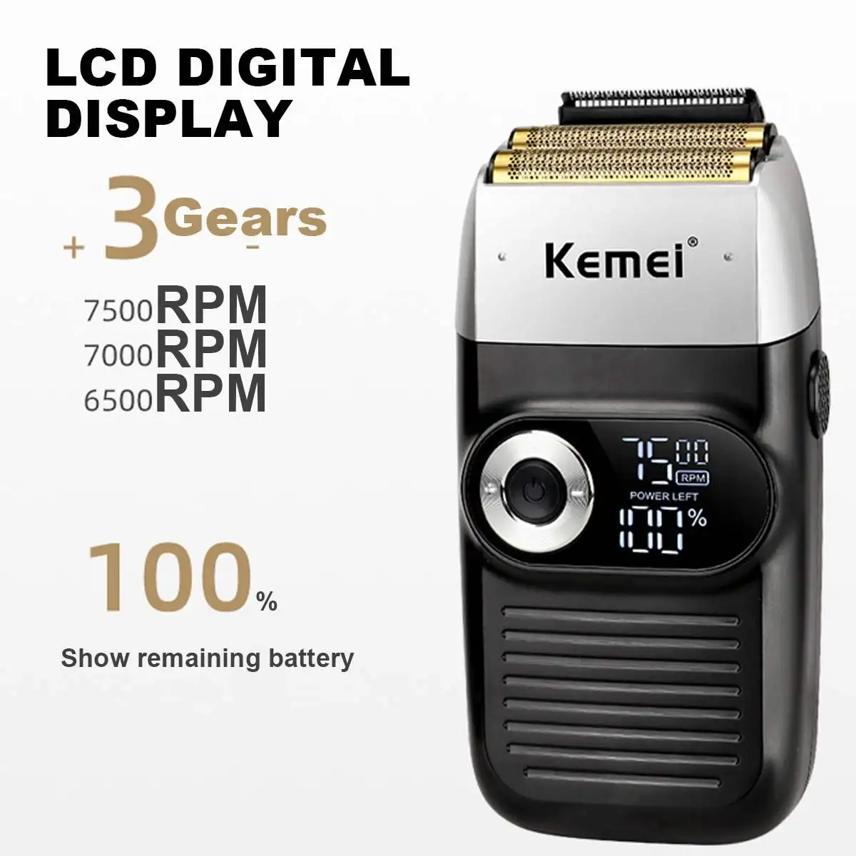 ЭлектробритваХарактеристики:Модель: KM-2026Цвет: зеленый/черныйШестерня: 3 шестерниМощность: 5 ВтНапряжение: 220 ВАккумулятор: 1400 мАчВремя зарядки: 2 чВремя работы: 120 минутИсточник питания: Перезаряжаемый USBМетод очистки: мытье телаЛезвие режущей головки: возвратно-поступательное лезвие бритвы + лезвие ножаОсобенности:-Мощная и многофункциональная.-3 передачи мощности: 6500/7000/7500 об/мин.-Большая сетка для увеличения площади контакта.-ЖК-дисплей, интуитивно понятный дисплей и оставшаяся мощность.-Плавающий двойной сетчатый дизайн подходит для лица, плавающий без мертвого угла.-Двойная сетка увеличивает площадь соединения и может побриться как лысина.-Бритье, масло для волос, ремонт бакенбардов многофункциональный, компактный и портативный.Заряжайте в течение 2 часов, используйте в течение 2 часов в соответствии с различными контурами лица, гибкой работой.Посылка включает в себя:1 x электробритва1 x режущая головка1 х USB кабель1 x крышка режущей головки1 х сумка для храненияПримечания:1. Ручное измерение, пожалуйста, учитывайте погрешность в 1-3 см, спасибо.2. В связи с разной конфигурацией разных мониторов изображение не отображает фактический цвет товара. Мы гарантируем, что стиль такой же, как показано на фотографиях. Пожалуйста, поймите, спасибо!