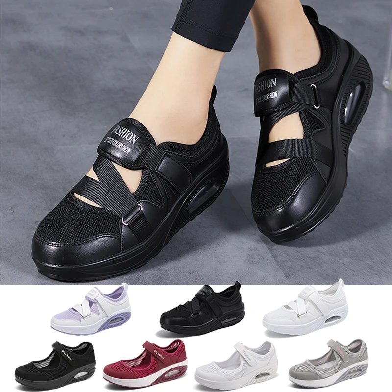 Кроссовки женские теннисные на нескользящей подошве, дышащие, с липучкой, на воздушной подушке, обувь для увеличения роста, для улицы, прогулок, спортзала
