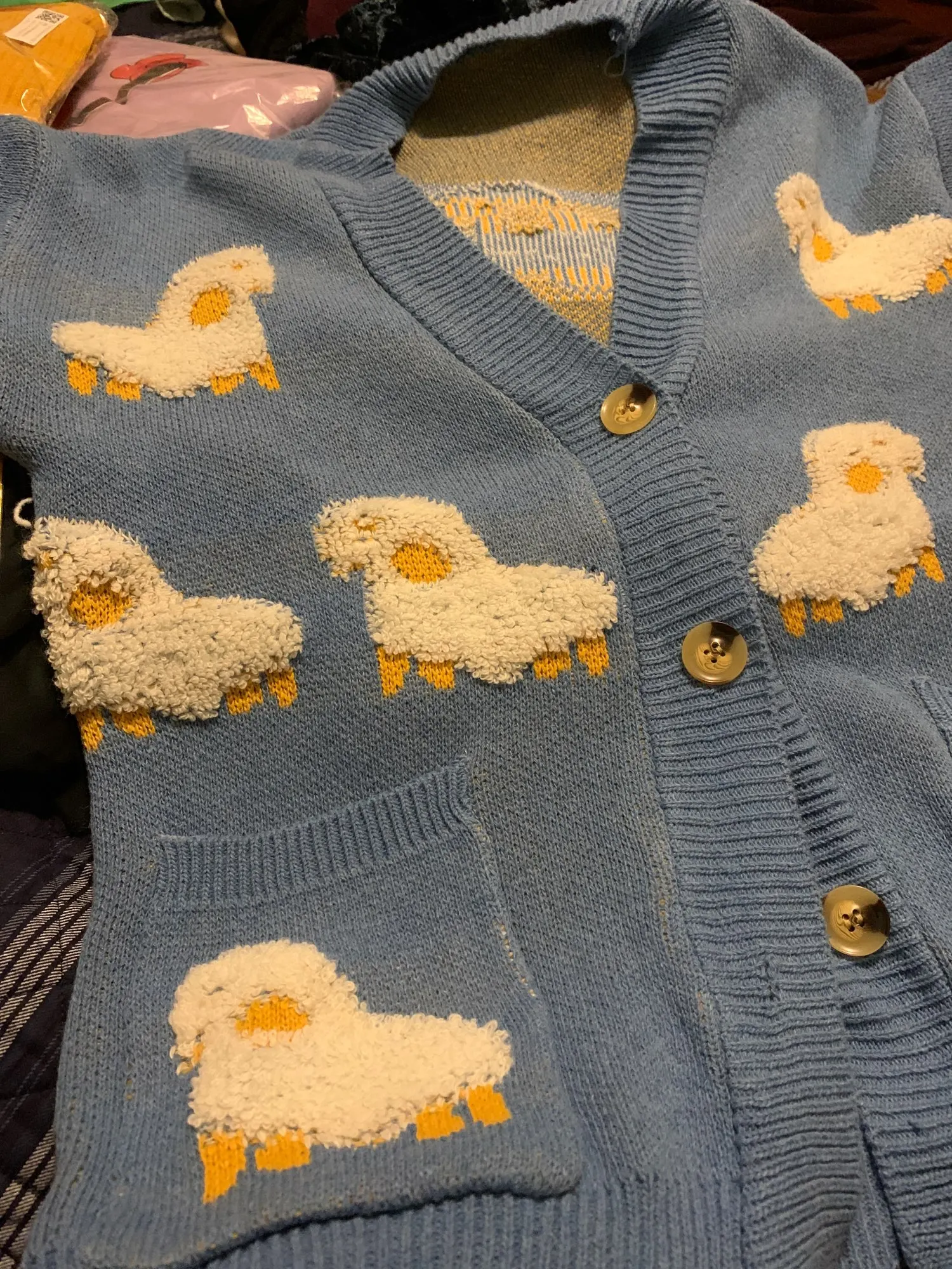 Женский трикотажный кардиган с V-образным вырезом и мультяшным принтом