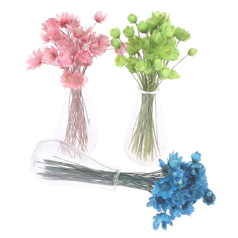 1:12 миниатюрная ваза для кукольного домика с цветами жасмина стеклянный высушенный цветок семейный горшок для кукол домашняя имитация горшечных растений