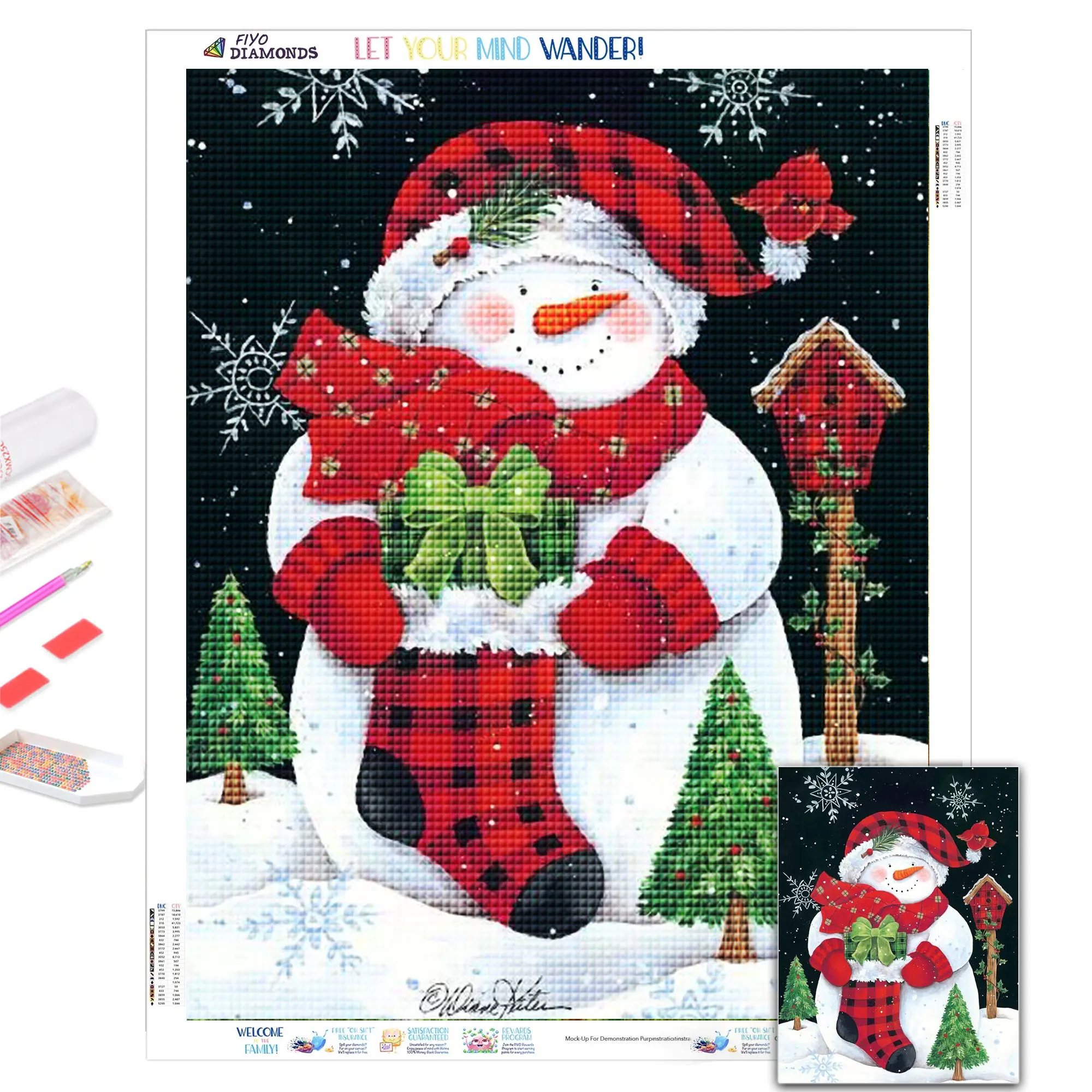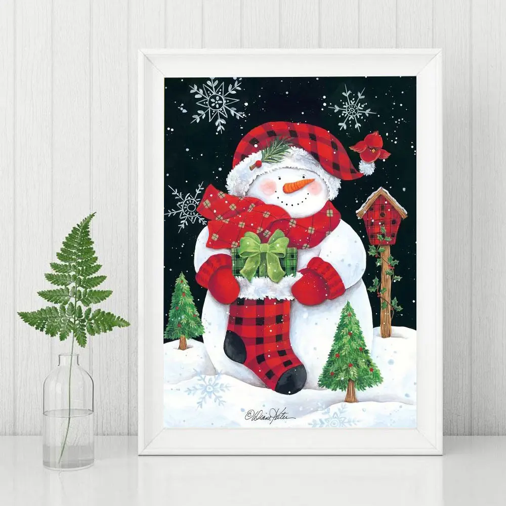 【 Площадь сверла 】: Полностью квадратная/круглая Алмазная мозаика Рождественский снеговик