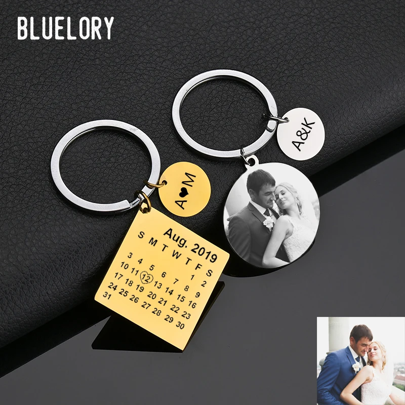 Фотография Bluelory с гравировкой на заказ, фото с именем брелок-календарь, Золотая нержавеющая сталь, фотография детской семьи