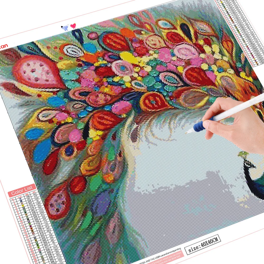 HUACAN 5D алмазная вышивка павлин полная дрель квадратная Алмазная картина Бриллиантовая мозаика с животным украшение для дома