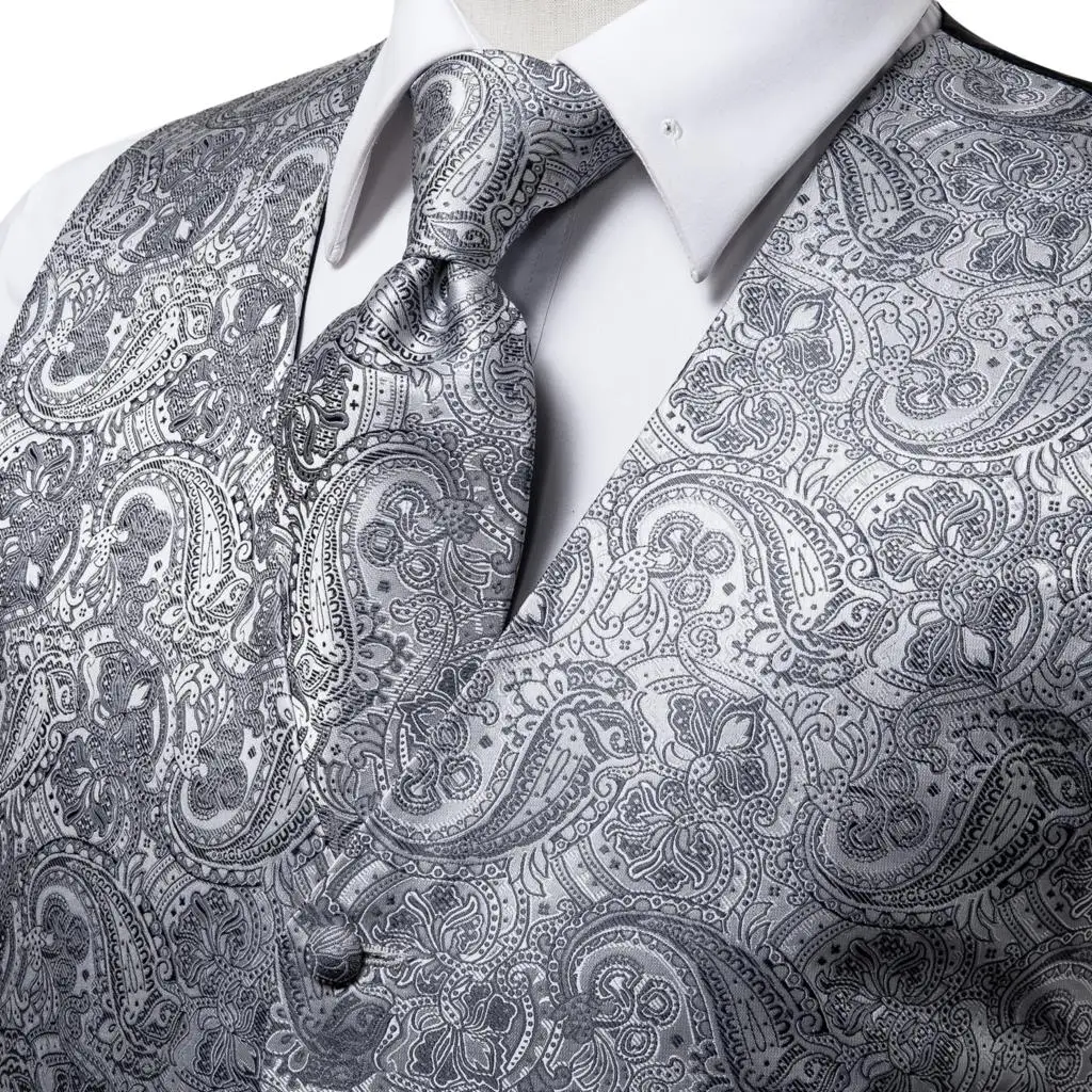 Привет-галстук мужской костюм жилетки галстук платок запонки Набор Шелковый Приталенный жилет с галстуком куртка Пейсли Цветочный простой цвет