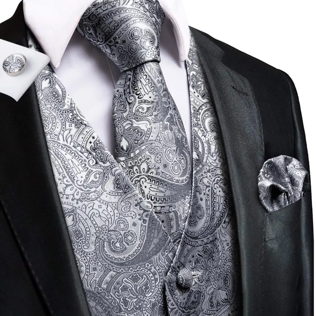 Шелковый мужской жилет, комплект с галстуком, мужские жилеты с галс...