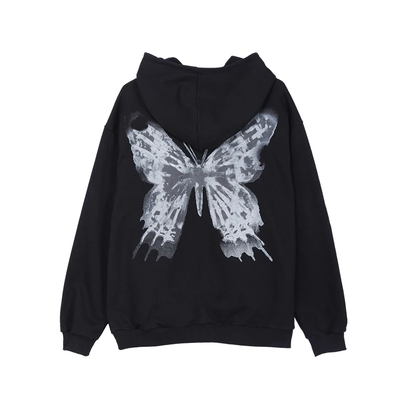 Женские толстовки с принтом бабочки гранж-панк в стиле хип-хоп толс...