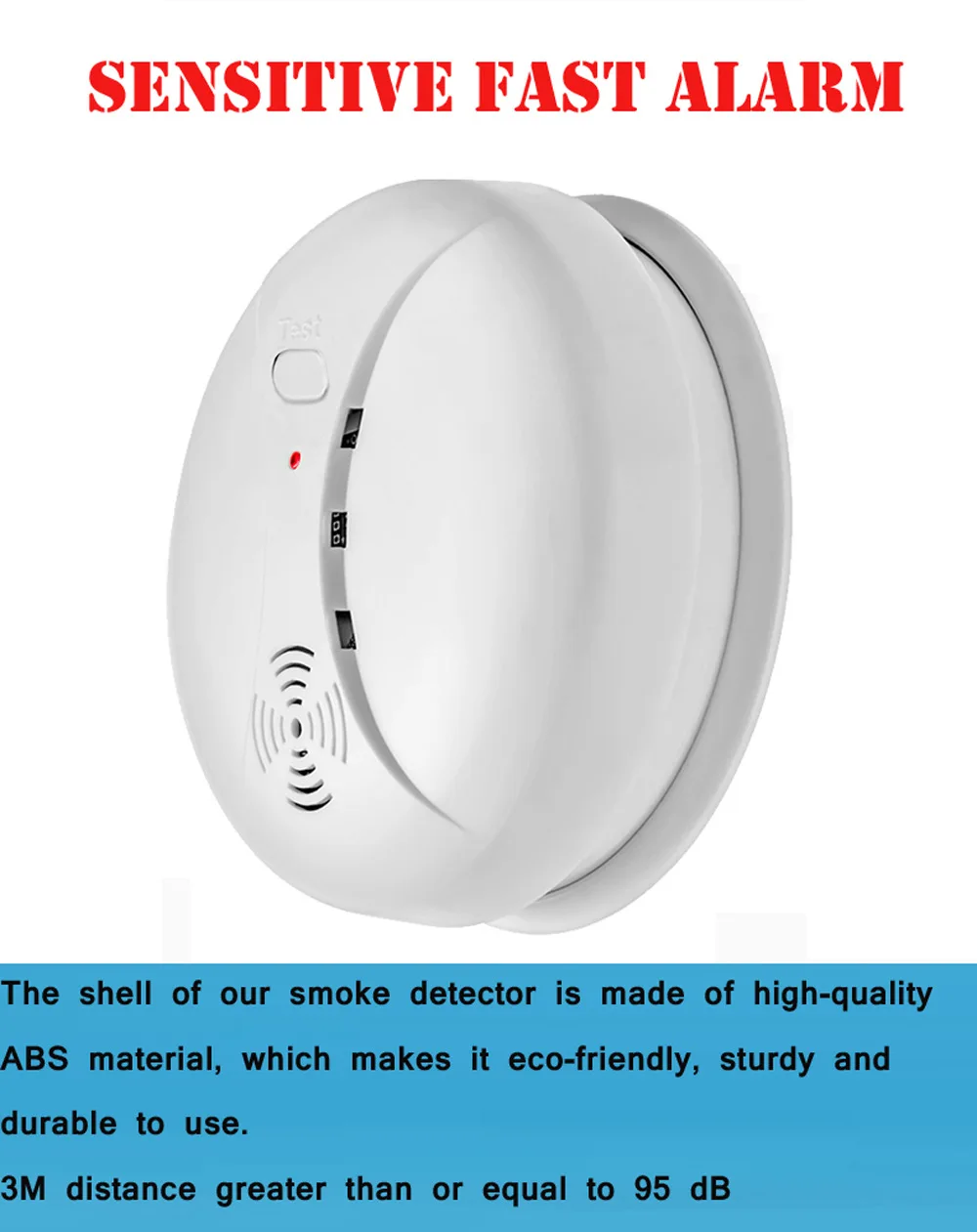 Датчик дыма обеспечивает предотвращение пожара путем мониторинга концентрации дыма. Когда концентрация дыма превышает лимит, датчик дыма генерирует звуковой и визуальный сигнал тревоги и Выводит сигнал тревоги.