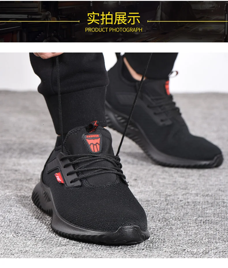 Летняя мужская защитная обувь со стальным носком; Черные рабочие мужские кроссовки; Сетчатая защитная обувь; Мужские Легкие Промышленные кроссовки
