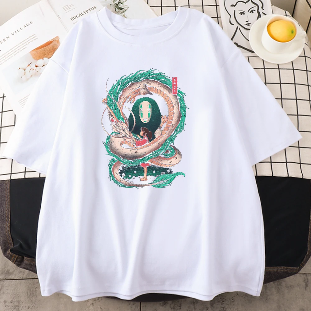 Летняя женская футболка с рисунком из аниме Унесенные призраками, модная футболка в стиле Харадзюку, топы в Корейском стиле, мягкие женские черные футболки, 2021
