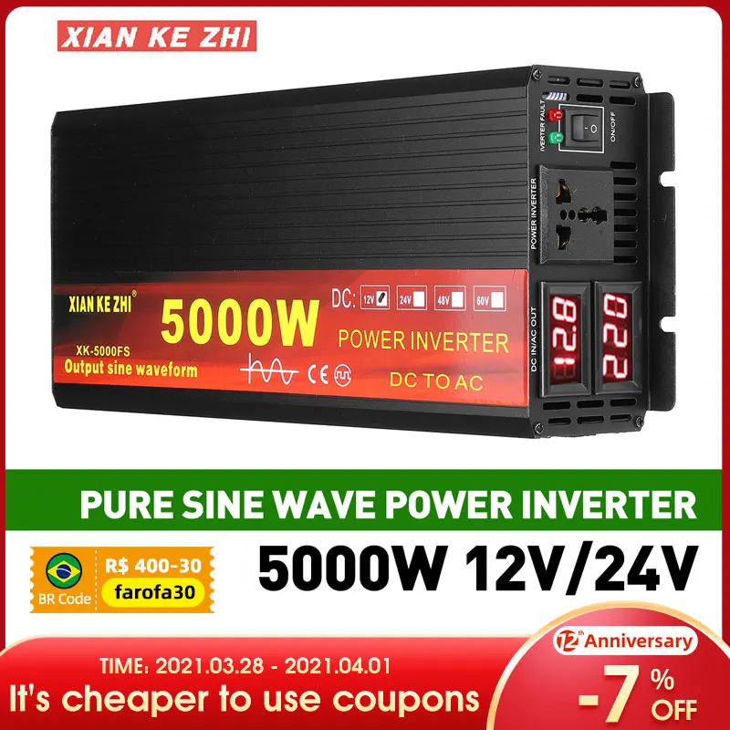 Инвертор немодулированного синусоидального сигнала, 12 В, 24 В постоянного тока, 110 В, 220 В переменного тока, мощность 2000 Вт, 3000 Вт, 4000 Вт, 5000 Вт, автомобильный инвертор, конвертер светодиодный ным дисплеем