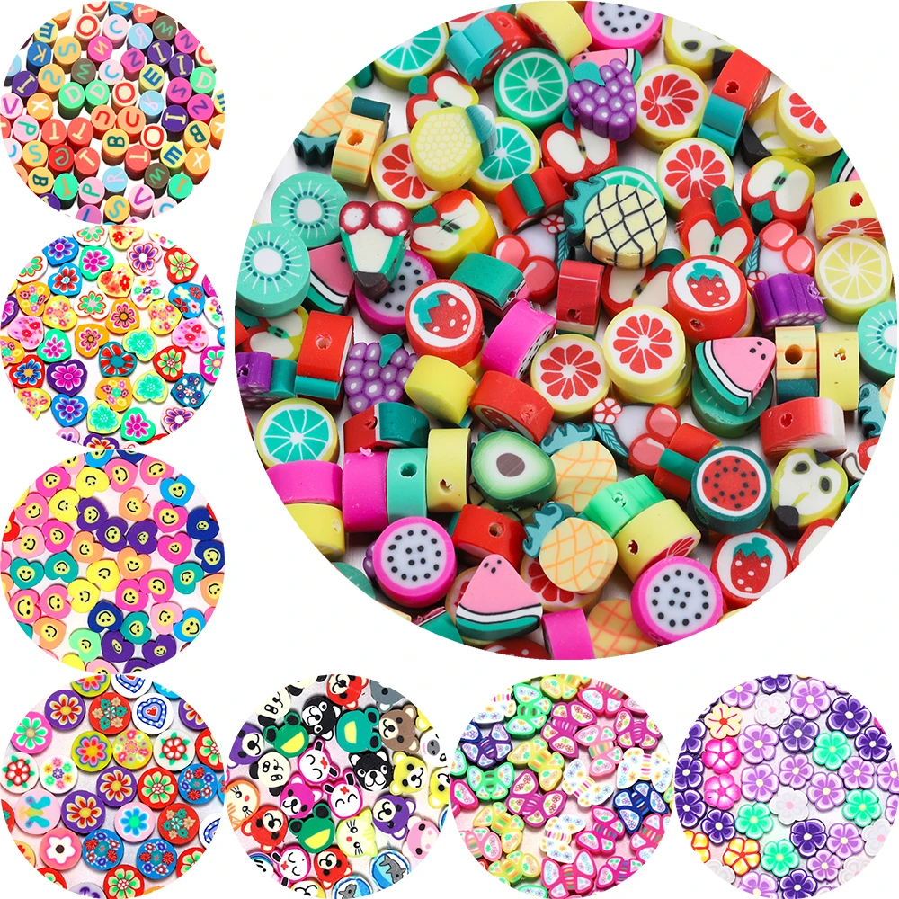 100 шт./лот 6-10 мм Полимерная глина с фруктовым смайликом многоцветные глиняные бусины для рукоделия аксессуары для изготовления ювелирных изделий