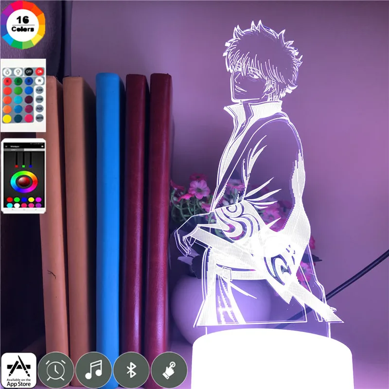 Светодиодная Ночная лампа Манга GINTAMA для спальни, акрилосветодиодный светодиодная подсветка Illsion, 3D светильник, искусственная кожа, гинтоки, настольная лампа, подарки, светильник