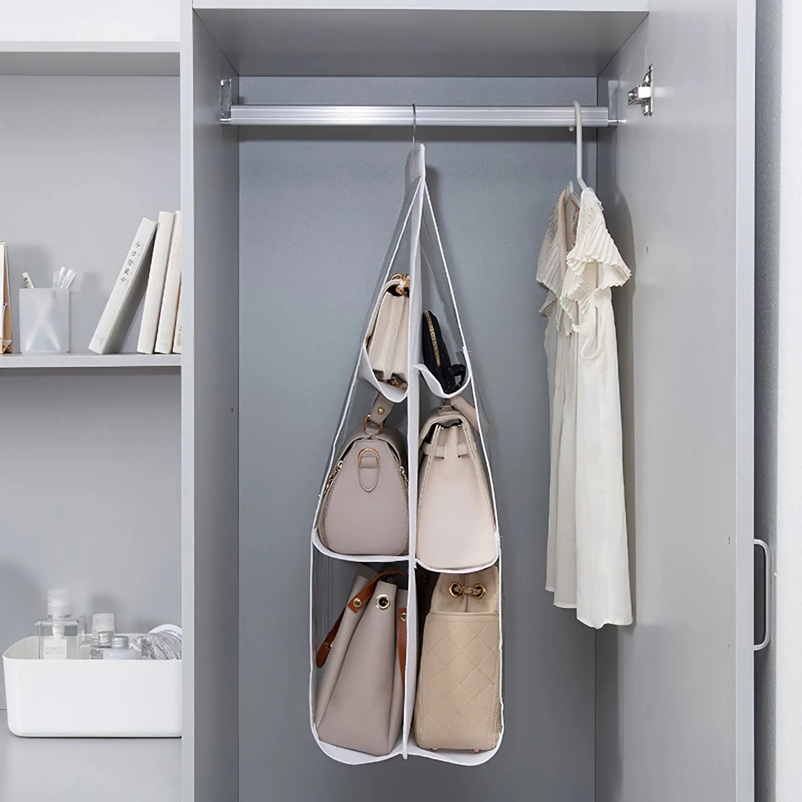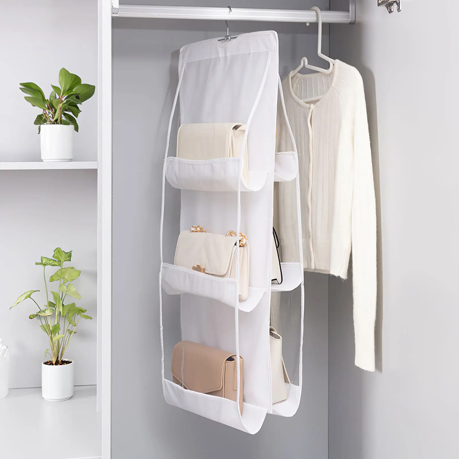 Сумка для хранения сумок имеет двойную сторону, и вы можете хранить несколько сумок одновременно. Не займет много места после подвешивания, очень экономит место.