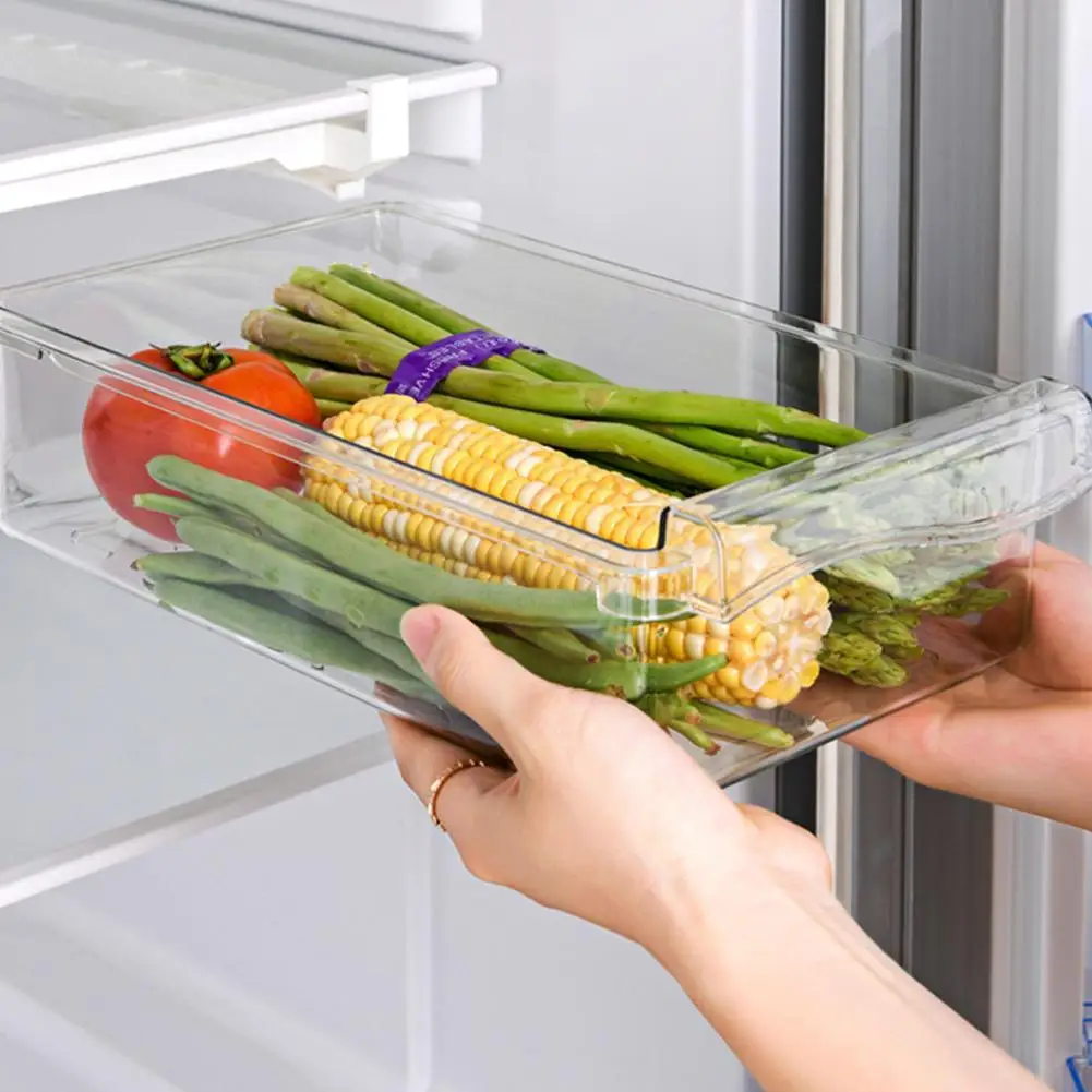 Кухонный органайзер для холодильника, складные ящики, выдвижные ящики, прозрачные полки для холодильника, держатель для пищевых яиц, коробка для хранения, прозрачный пластик