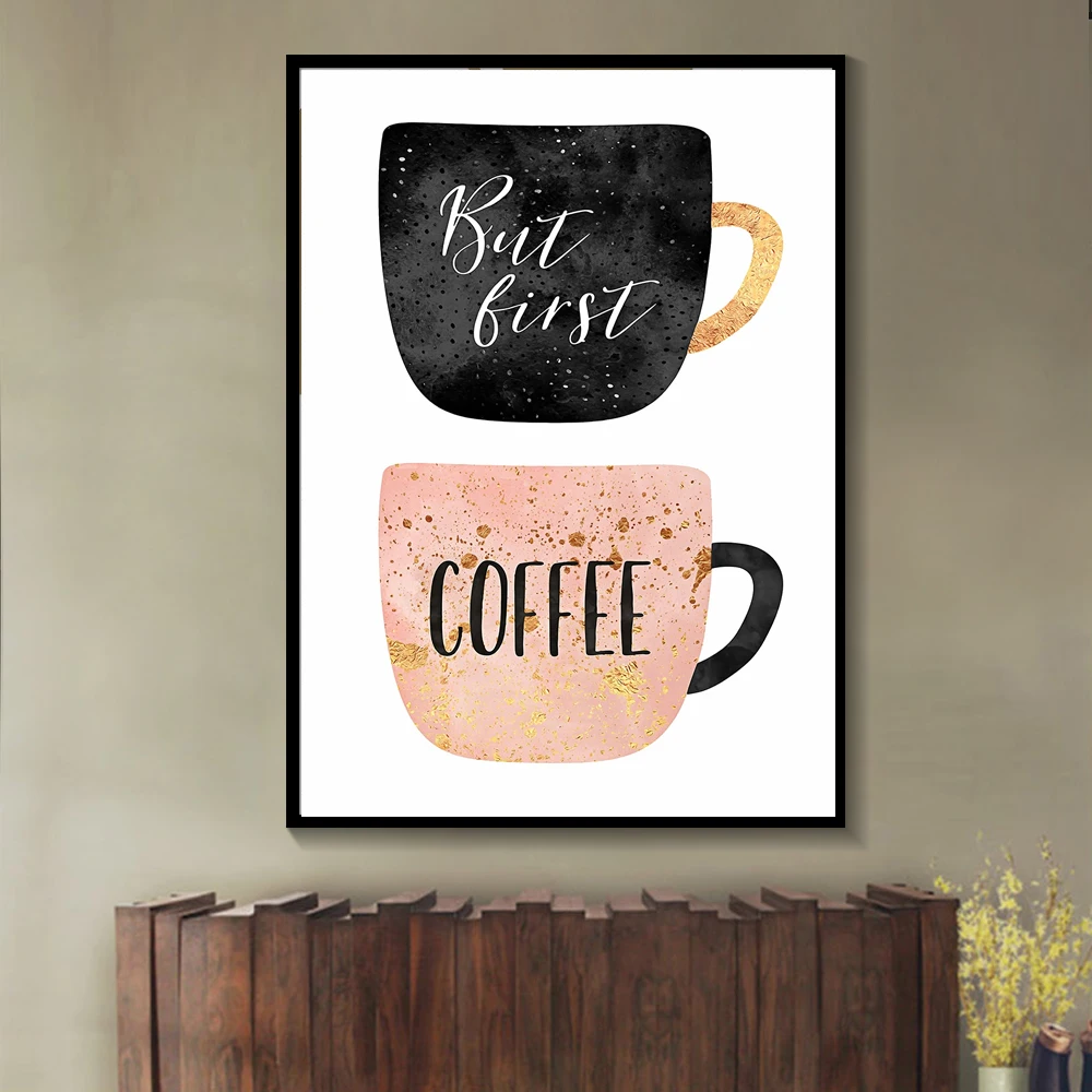 Но первый кофе красочные чашки Кофе Кухня печать плакат скандинавск...