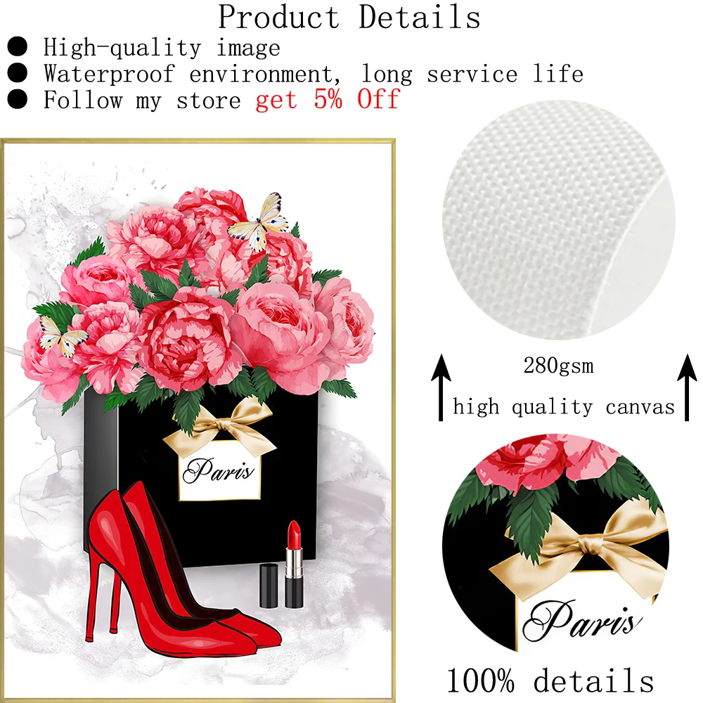 Модный постер, ваза для духов, Холщовый постер, настенный художественный постер, помада, цветочный принт, модное украшение для гостиной, настенная рамка