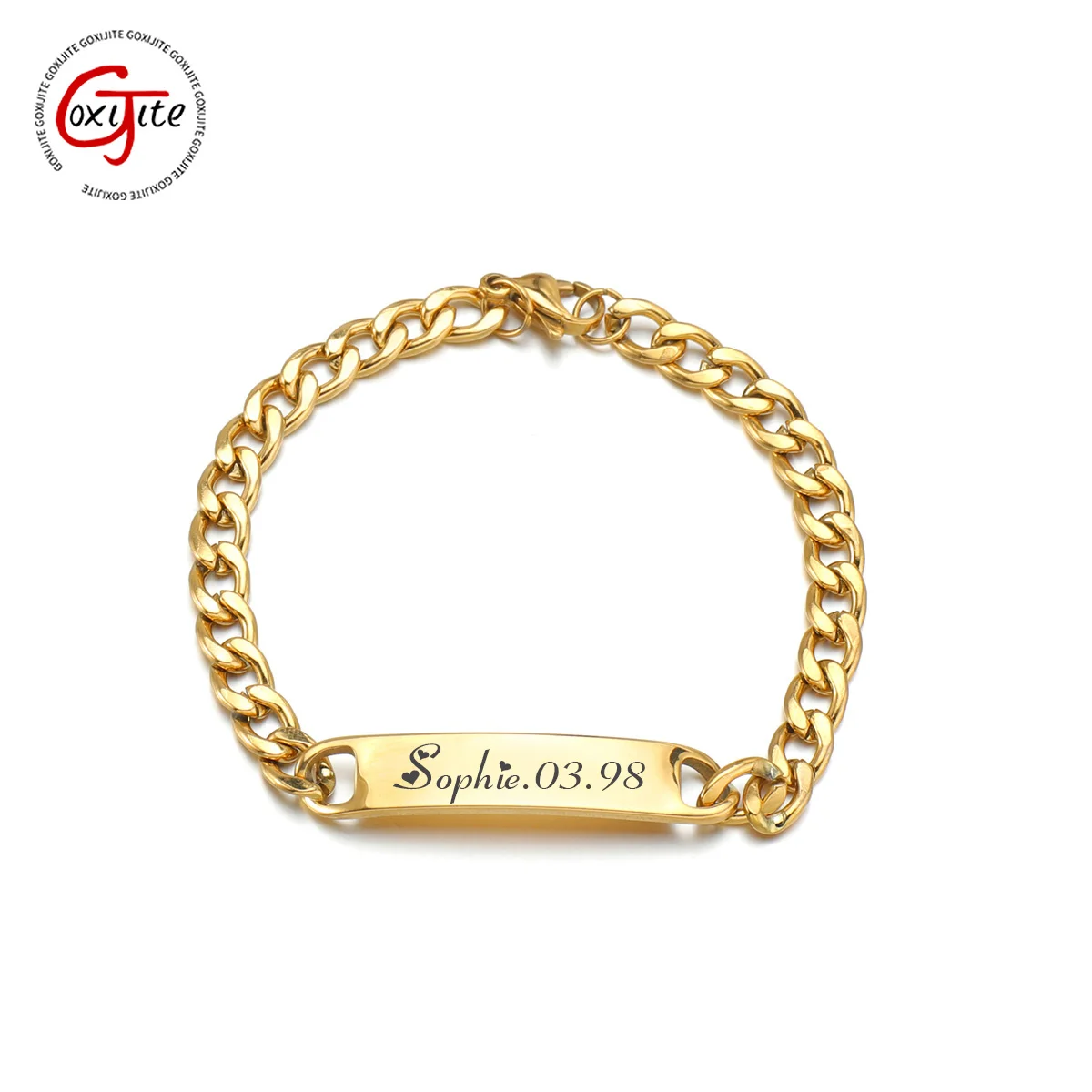 Браслет Goxijite с именем для мужчин и женщин, браслет из нержавеющей стали с гравировкой букв и даты, кубинская цепь, Подарочная бижутерия