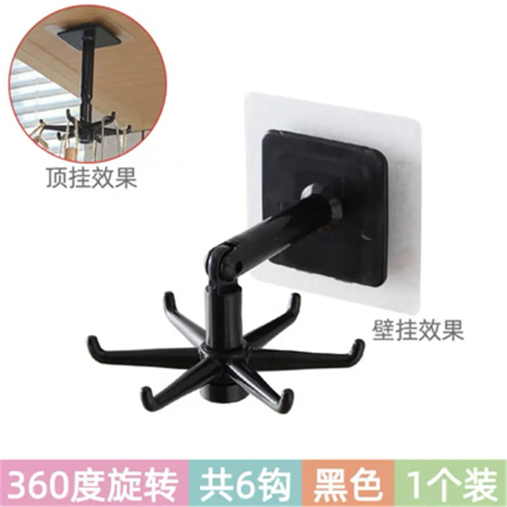 Самоклеящиеся кухонные крючки с вращением на 360 градусов, 6 крючков, домашний настенный дверной крючок, крючок для сумок, одежды, галстуков, вешалка для сумок, подвесная стойка
