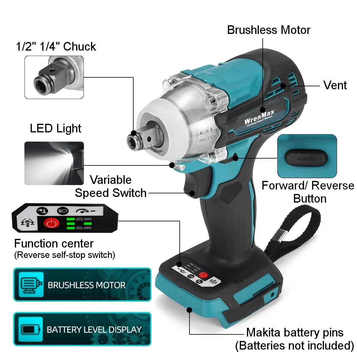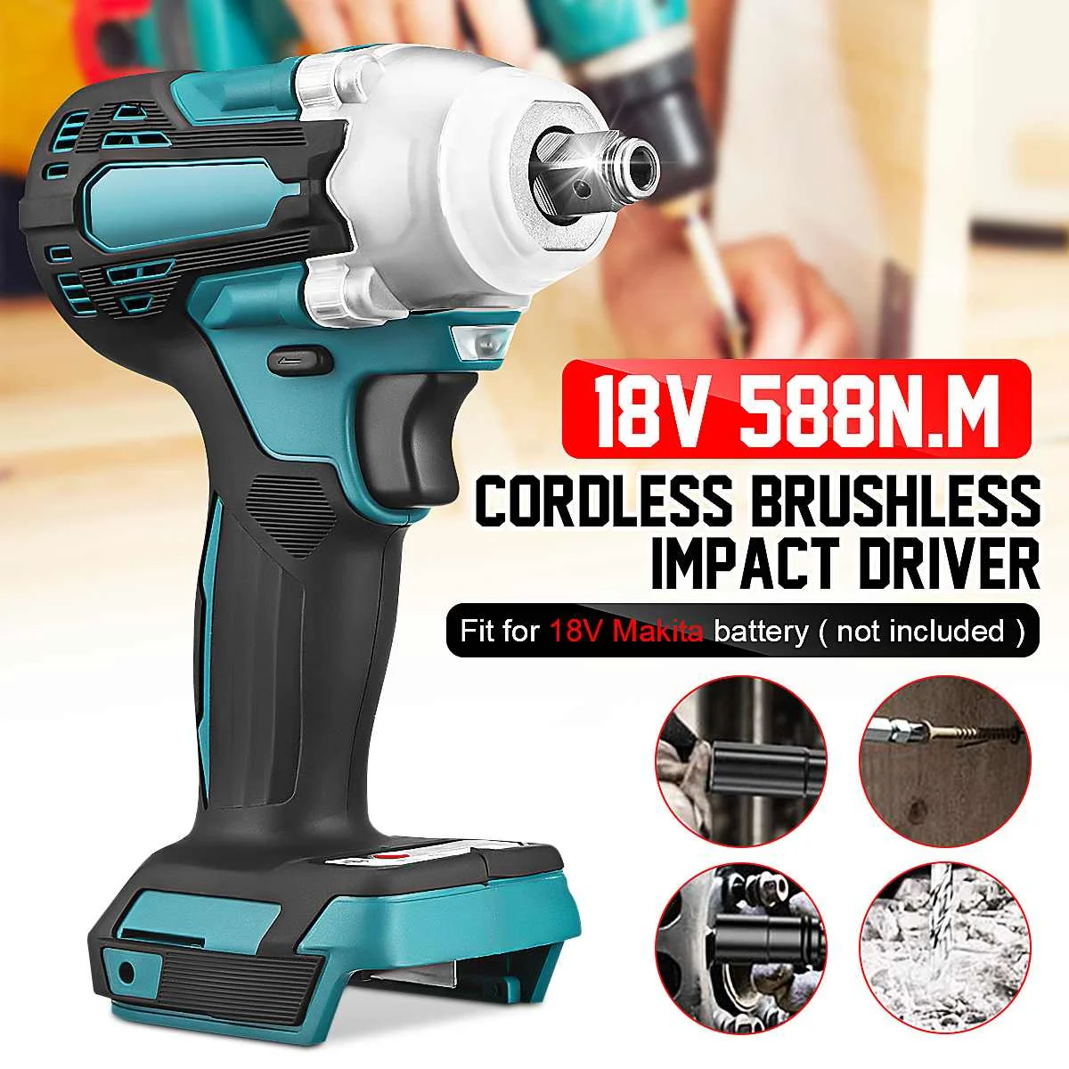 Гайковерт ударный электрический бесщеточный, 3 скорости, 588N.m, 18 в