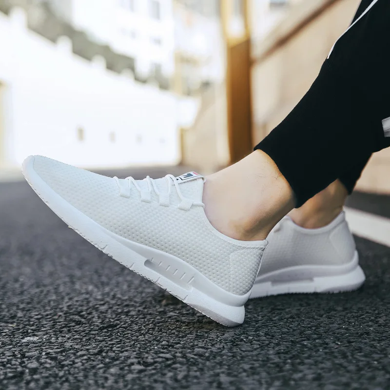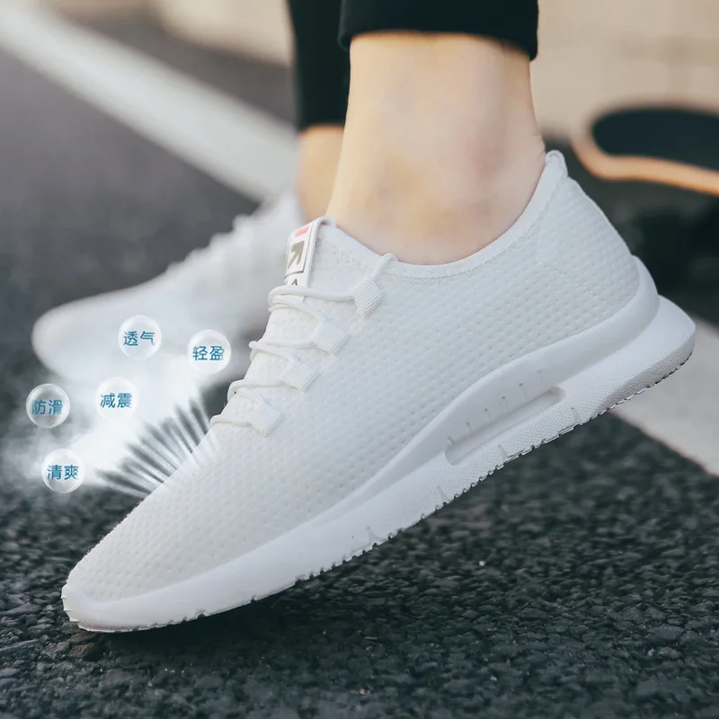 Кроссовки мужские с низким верхом, повседневная обувь из сетчатого материала, Вулканизированная подошва, прогулочная обувь, белые, весна-осень 2021