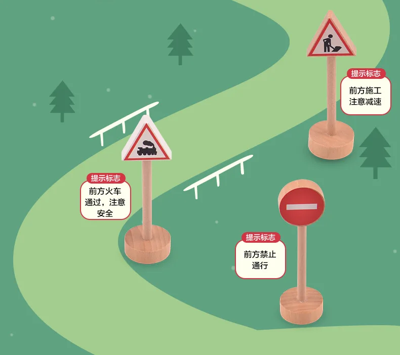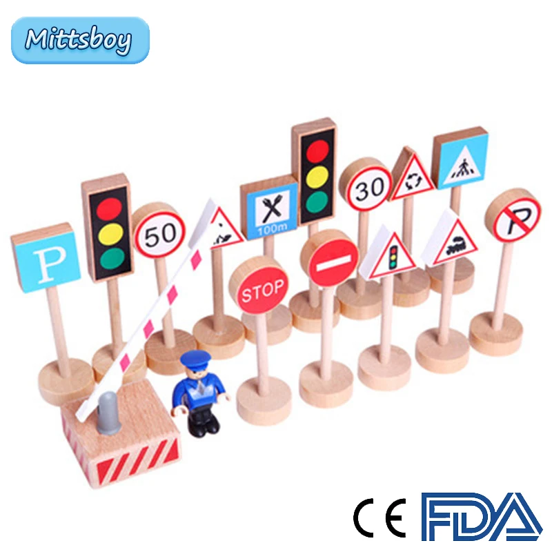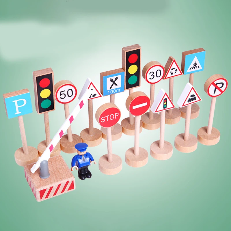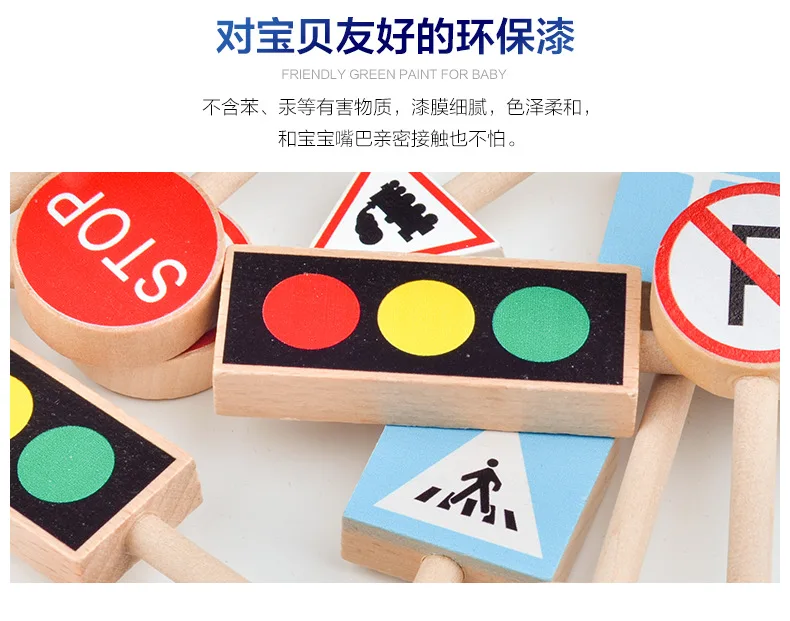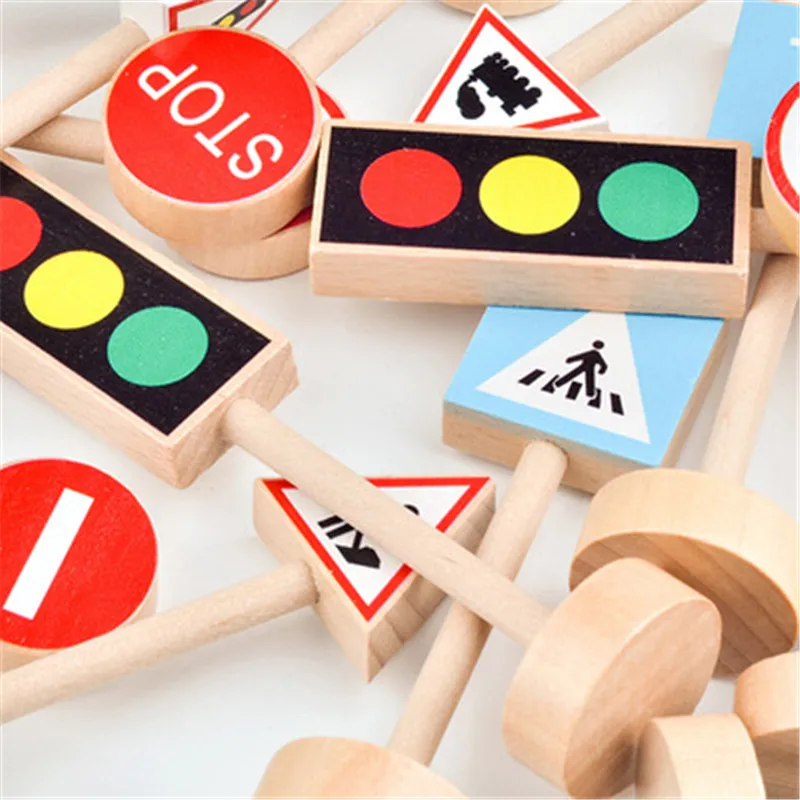 Обучающая деревянная игрушка Монтессори, 16 шт., 3D дорожный знак, дорожный знак, модель деревянного мини-самолета, автомобиль, деревянные детские игрушки, подарки