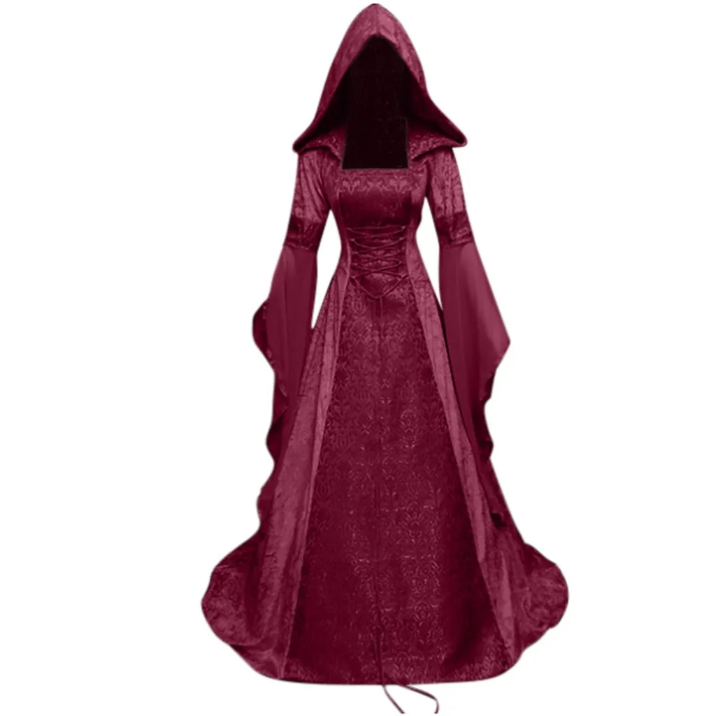 Женская мода с длинным рукавом с капюшоном средневековое платье в пол косплей платье