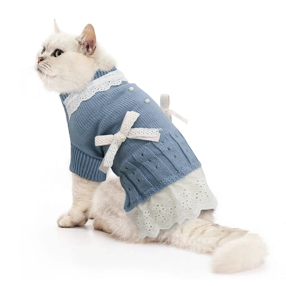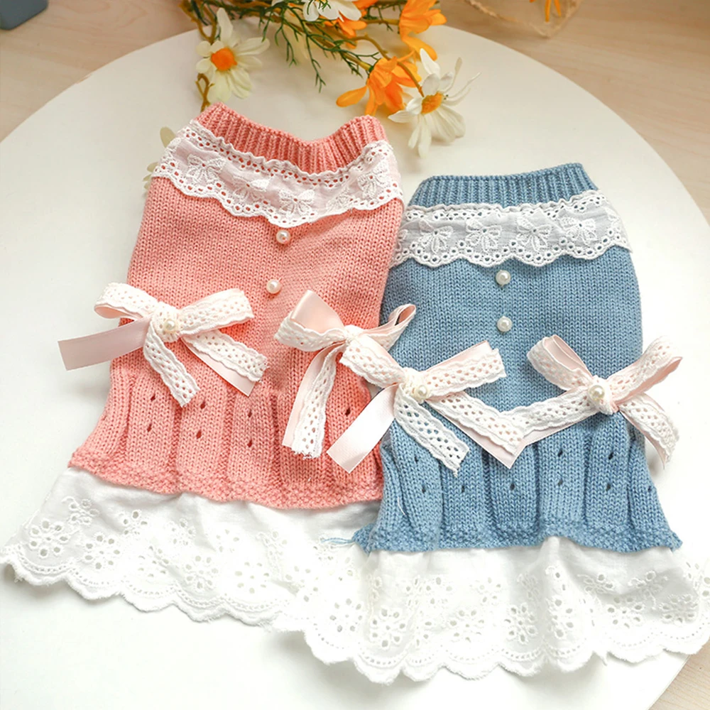 Милый, собака, кот, свитер, платье, Мягкий щенок, котенок, одежда, платья, милый бант, одежда для домашних животных для маленьких средних собак, кошек, кроликов
