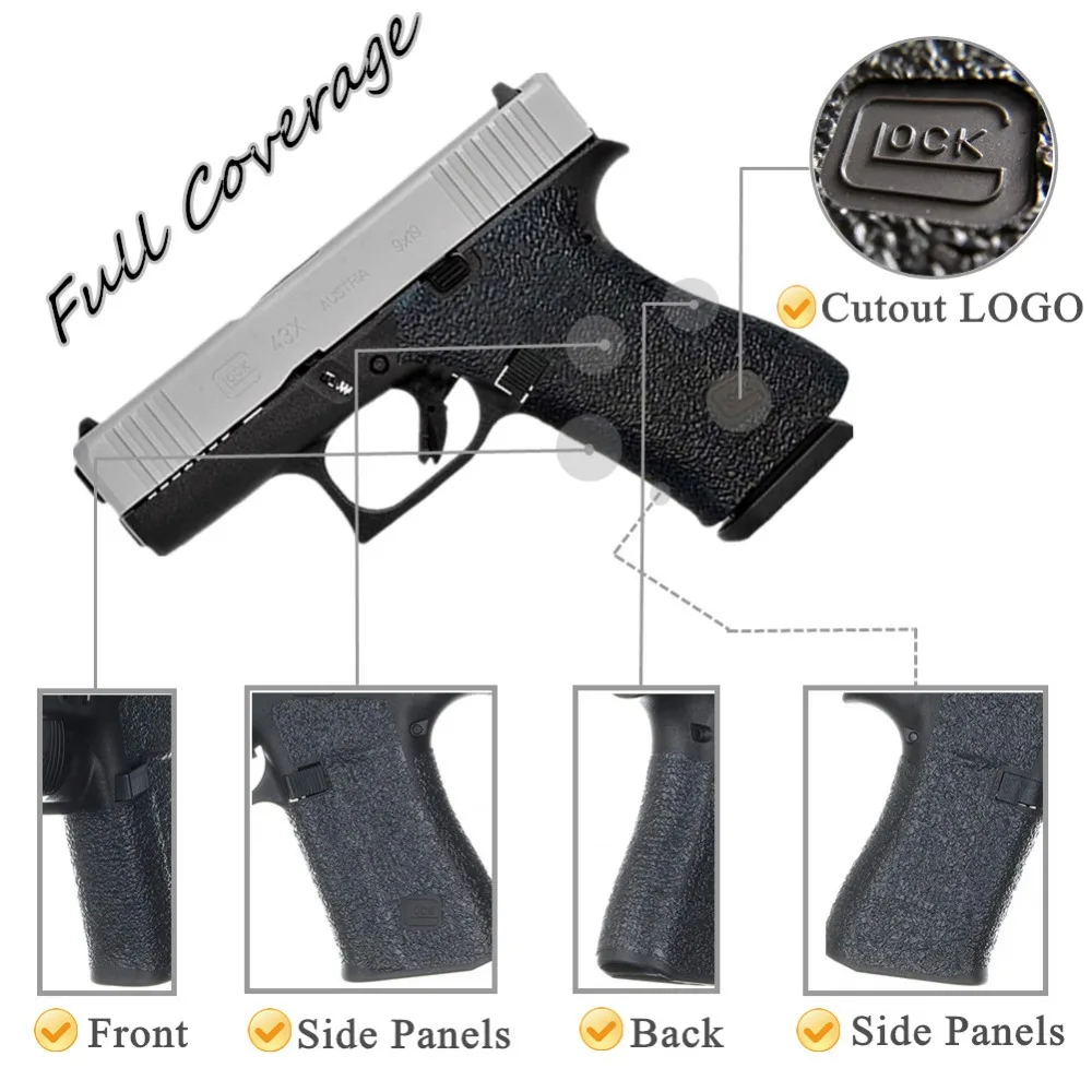 Резиновая текстурная рукоятка на заказ для пистолетного ружья Glock 43 43x48 клейкая лента 9 мм рукоятка магазин удлинитель Нескользящая лента