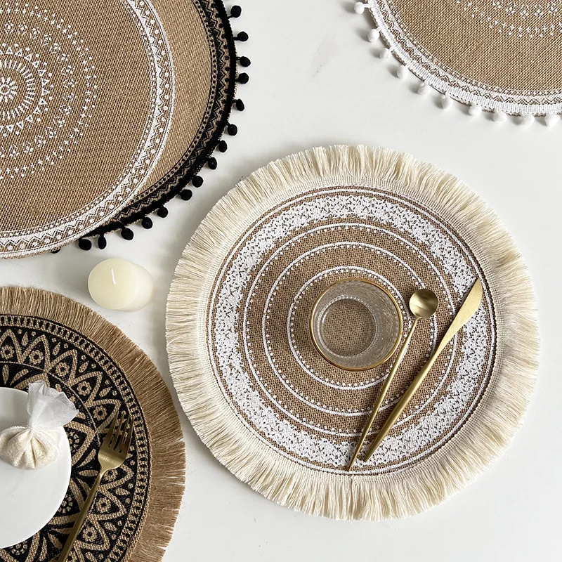 Богемный тканый хлопковая салфетка изысканный коврик для стола с вышивкой, круглый коврик для еды, обеденная посуда, нескользящий коврик, Кухонное украшение